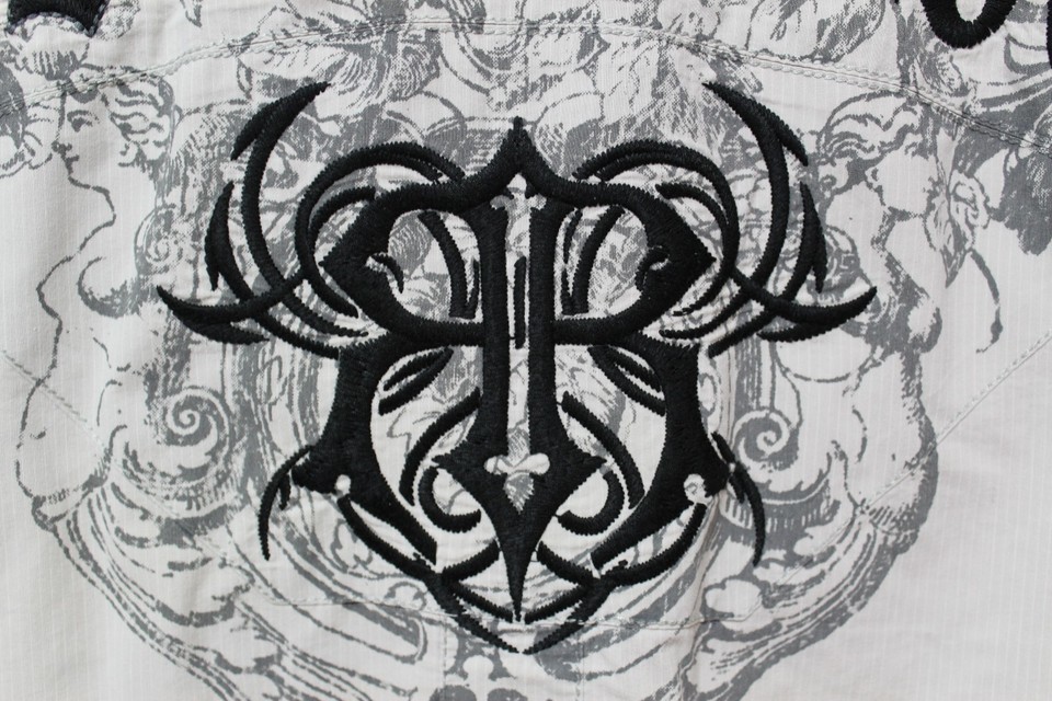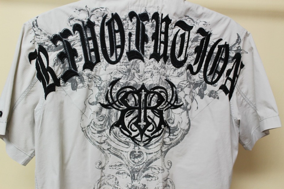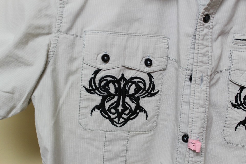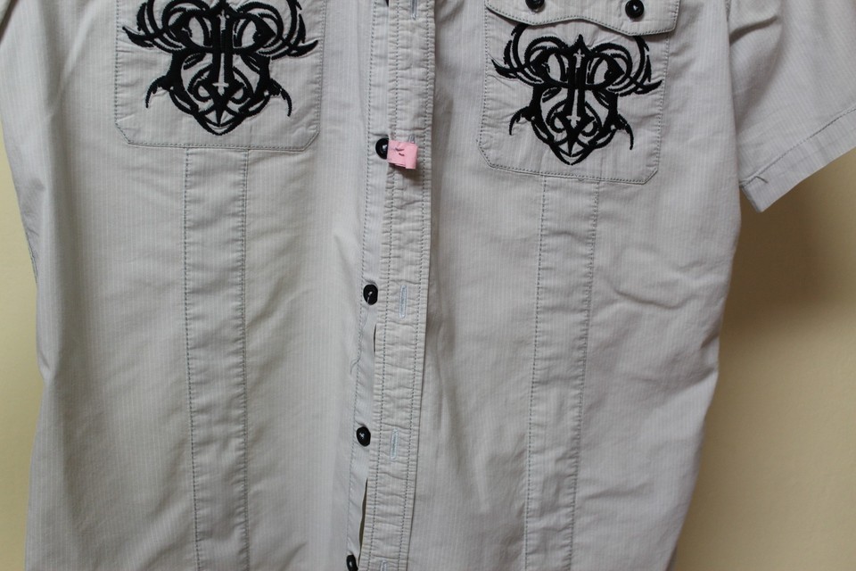Roar Signature Grey Embroidered Short Sleeve Shirt Size Medium