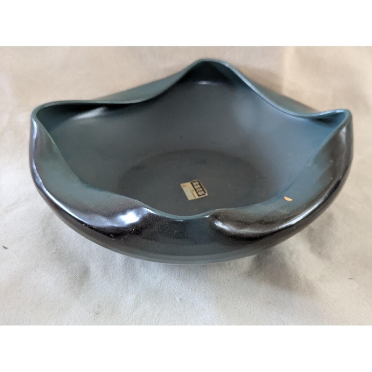 Keywords: art pottery, ceramic vessel, decorative bowl, mid century, modern decor, table centerpiece, statement piece, collectible vase, artistic home, unique planter, sculptural, blue glaze, art object