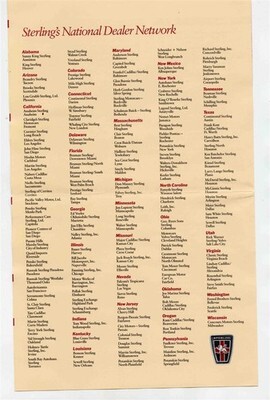 A large 4 page brochure. Sterling Motor Car Technical Specifications Brochure with list of their dealer network