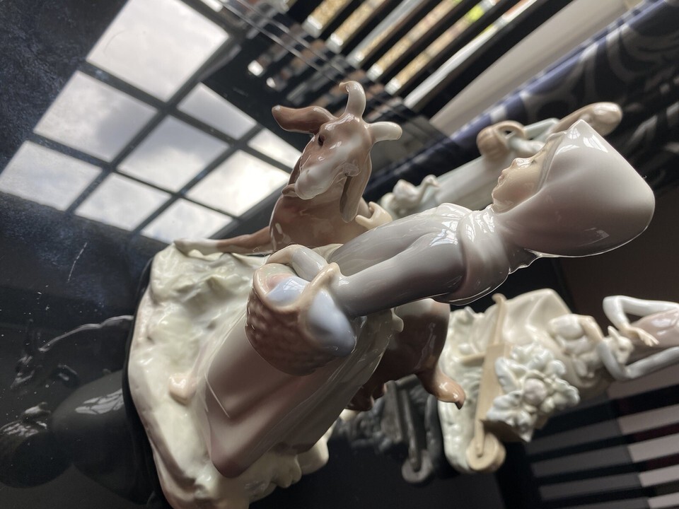 ?Girl with Goat ? - mainly good condition but the horns of the goat are not as long as they used to be and have been shortened . Stamped Lladro on base
