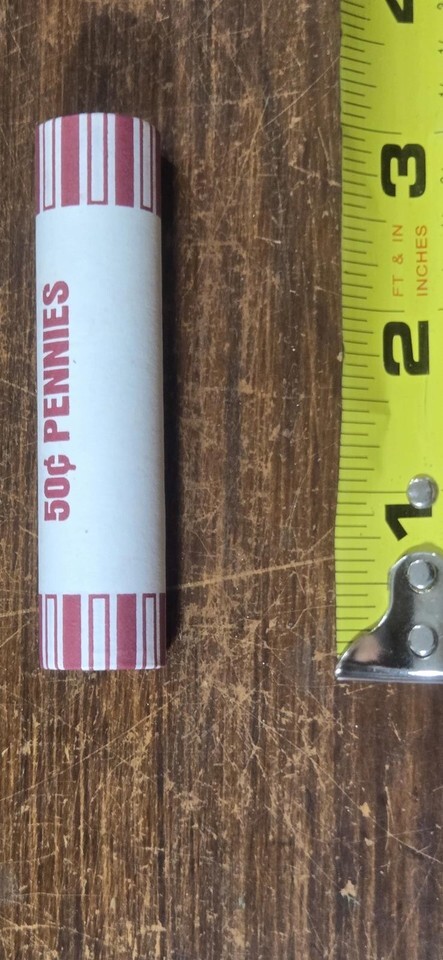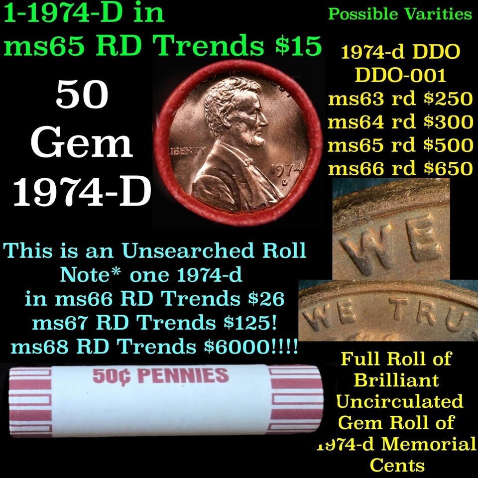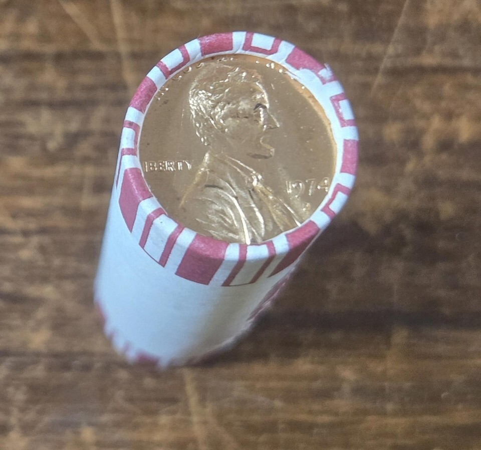 Uncirculated Bank Roll BU Shotgun Lincoln 1c roll, 1974-d 50 pc Bank Wrapper 50c