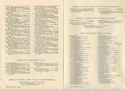 A 12 page stapled booklet. Southern Methodist University 38th Annual Convocation in 1953. Includes Commencement Exercises and Conferring of Degrees. Held at McFarlin Memorial Auditorium.