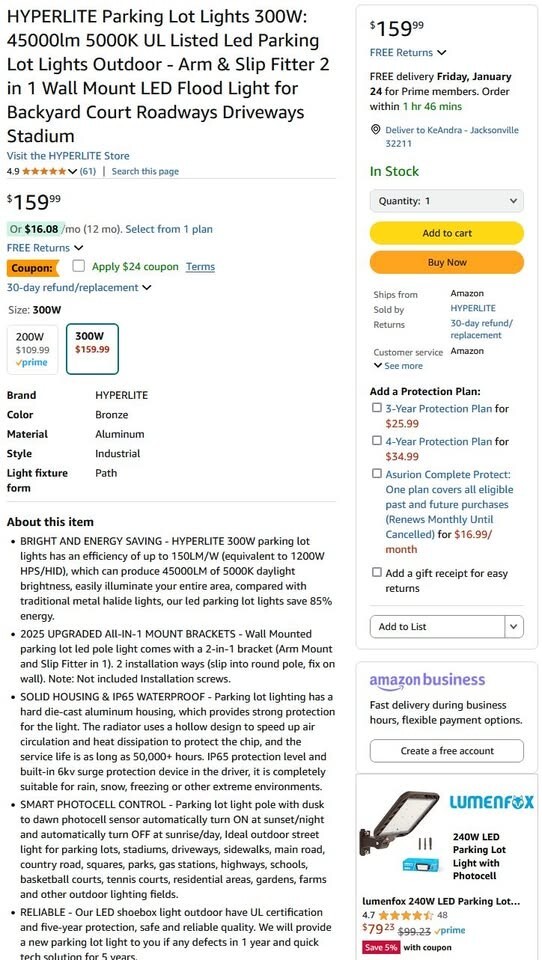 Hyperlite 300W Led Parking Lot Light - and 49 similar items