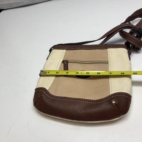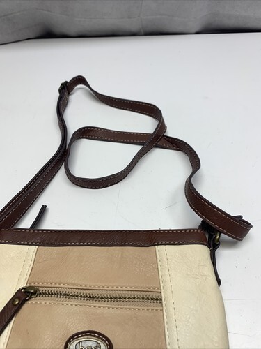 Born Concept Purse Brown Tan Ivory Leather Cross Body Adjustable Strap KG