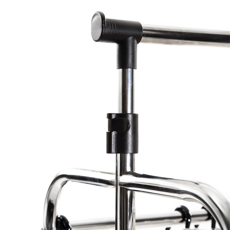 Heavy Duty Chrome Steel Construction Adjustable Clothes Bar with Locking Post Chrome Plated Wire Handles (4) 3" Rubber Wheels, 2 Locking