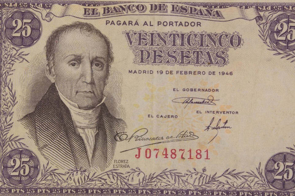1946 Spain 25 Pesetas Note // Very Fine+ and similar items