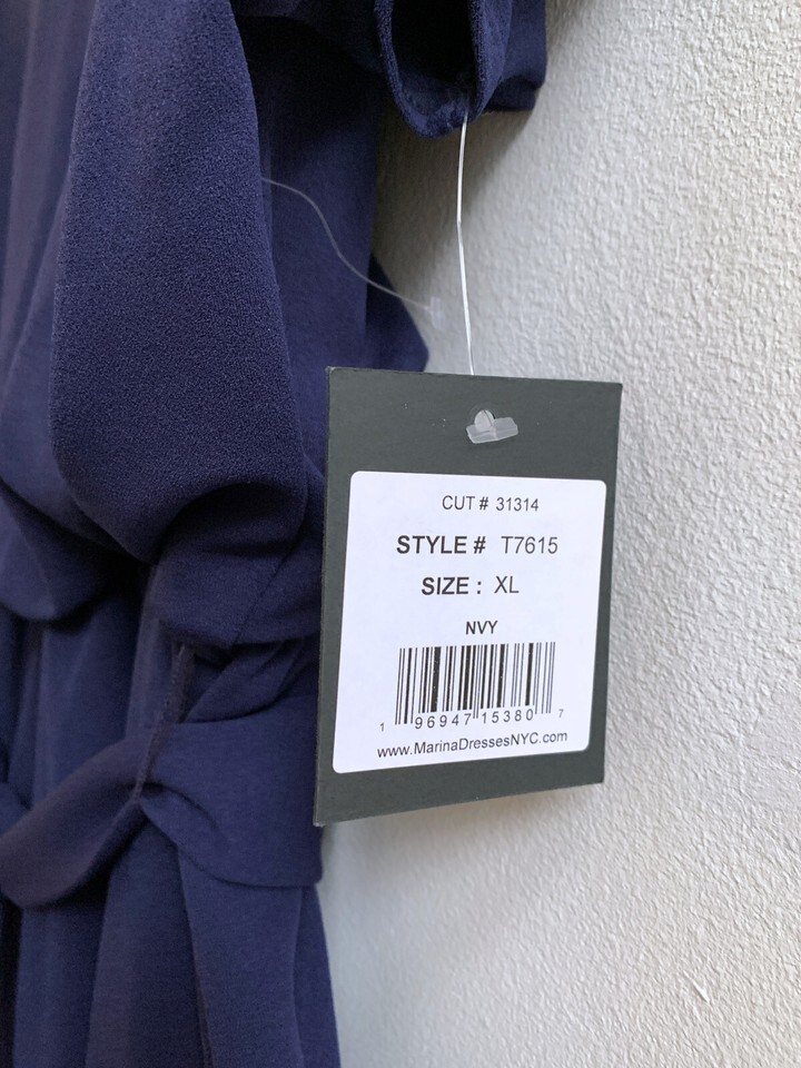 NEW Marina Navy Blue Boatneck Belted Midi Dress XL NWT