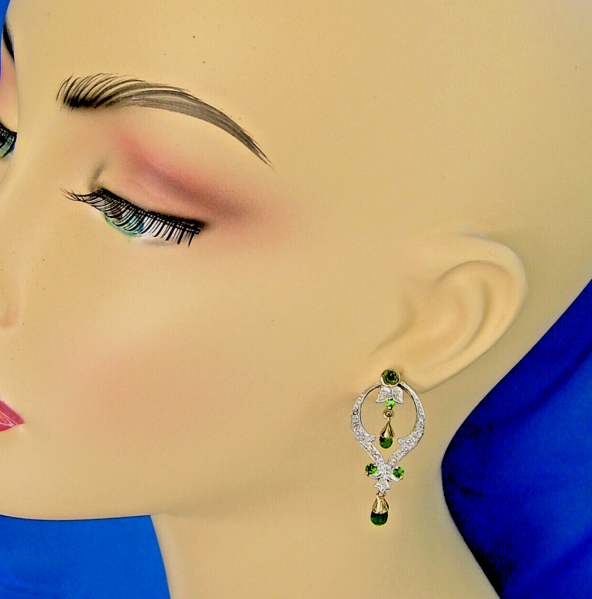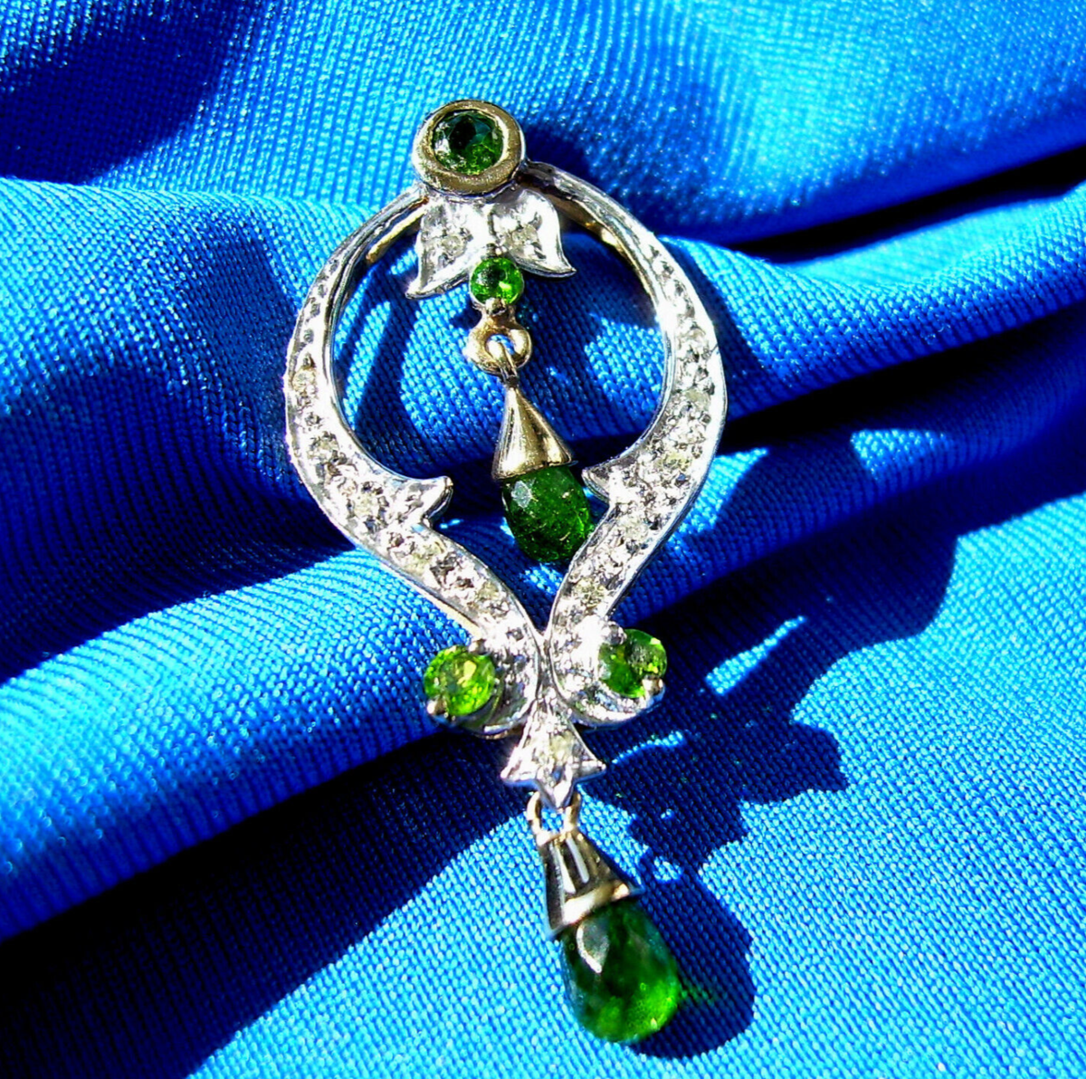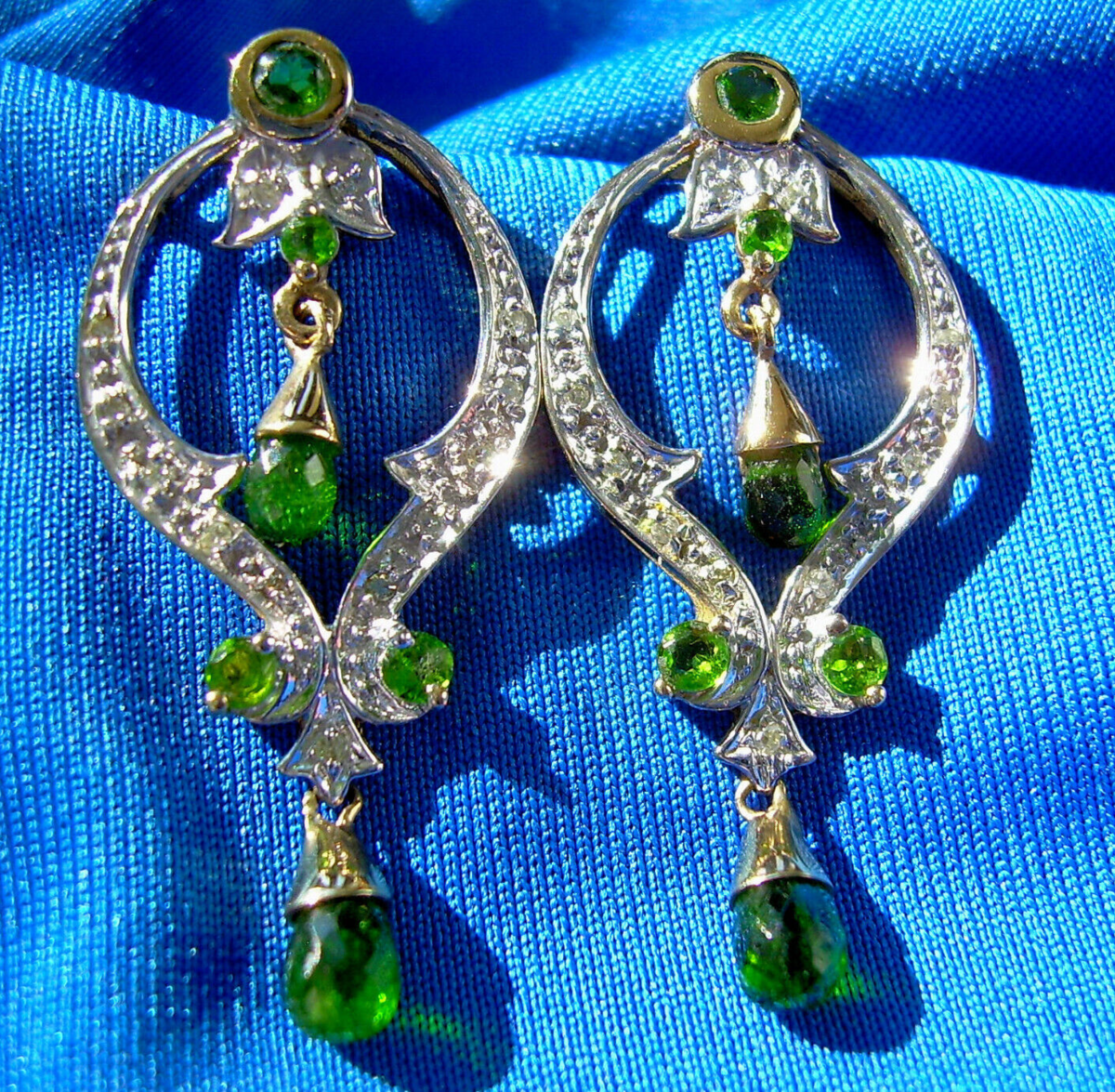 Exotic deco peridot and diamond Gatsby style dangles drops.