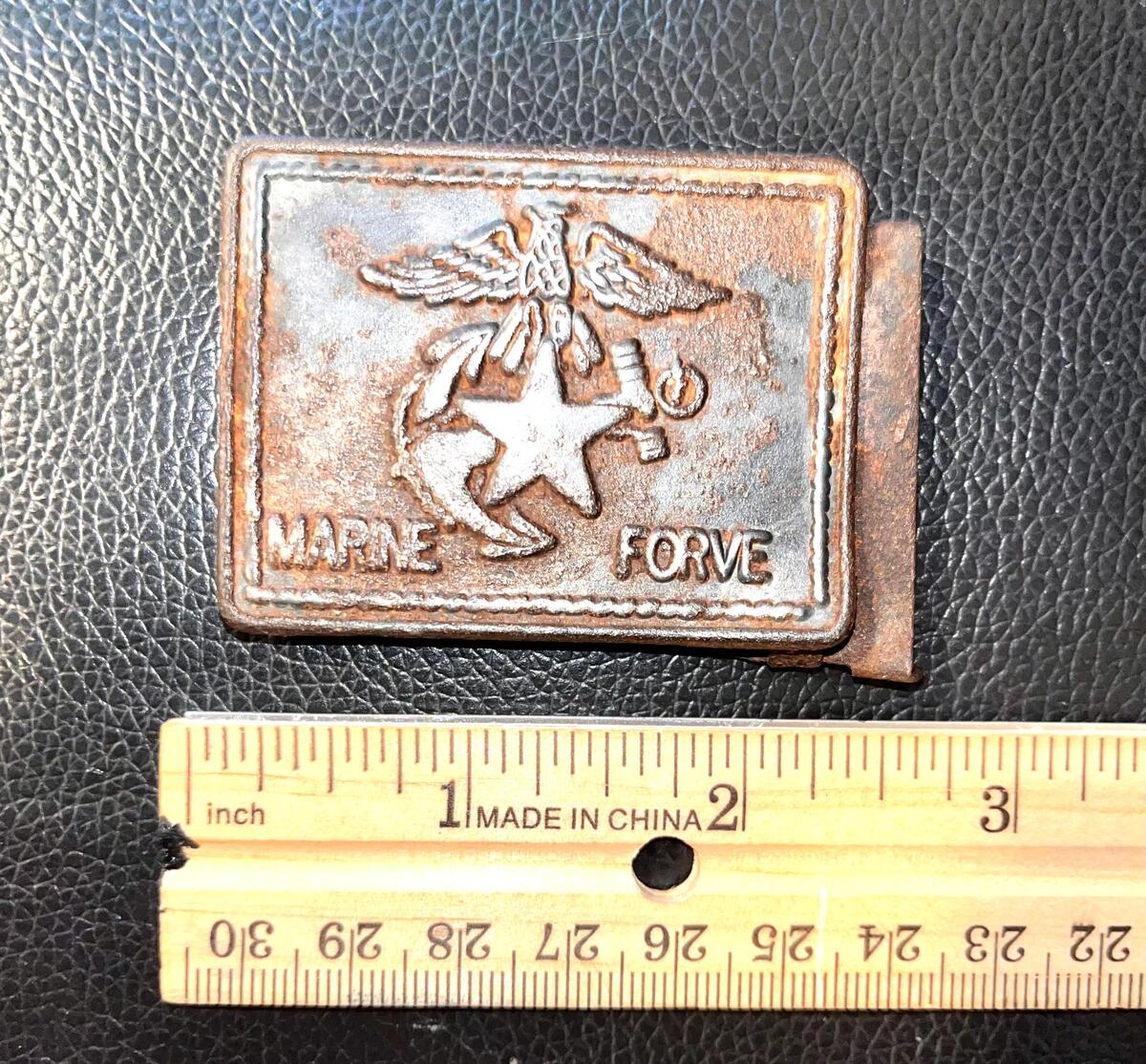Condition: this piece is in very good condition with no bending on the buckle itself. However, the part affixed behind, which is the part that allows the belt to be attached, it has some bending which can be bent back into place. We don't attempt fixing but would rather sell these Military pieces a is.