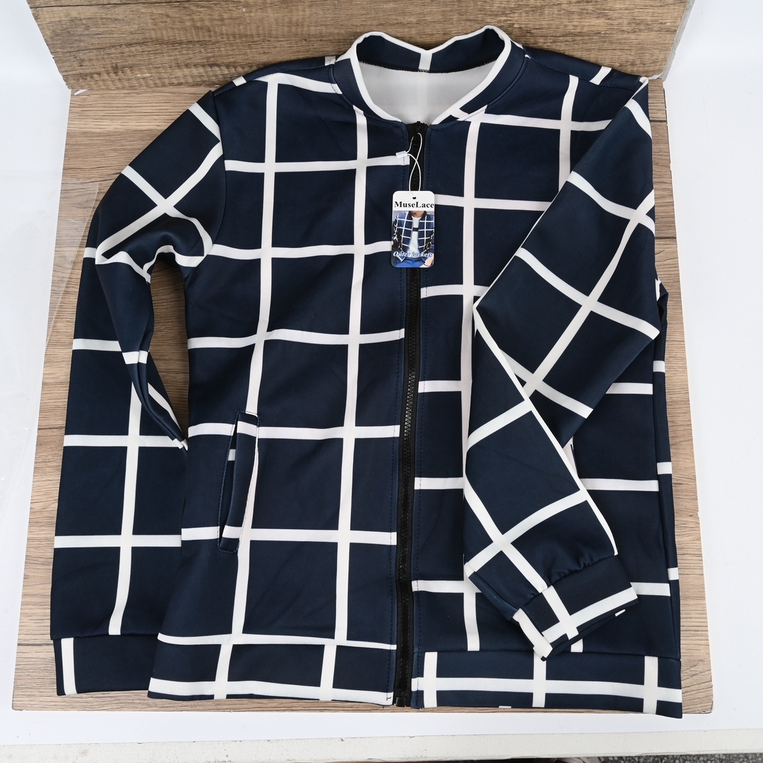 This stylish plaid jacket for men is made from 95% cotton and 5% spandex, providing a comfortable and flexible fit. Perfect for casual wear or light layering.