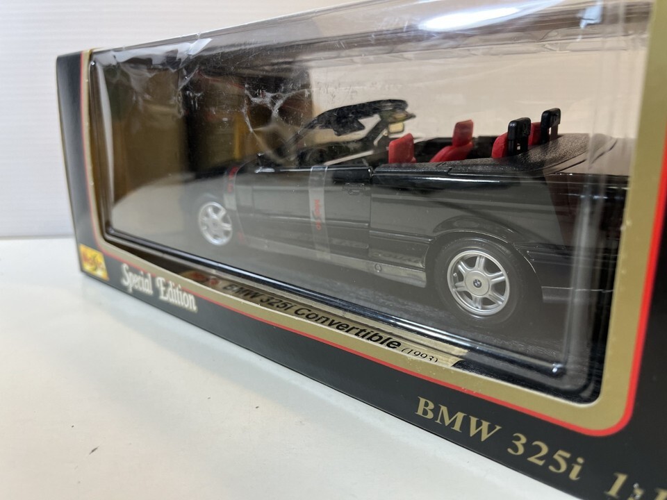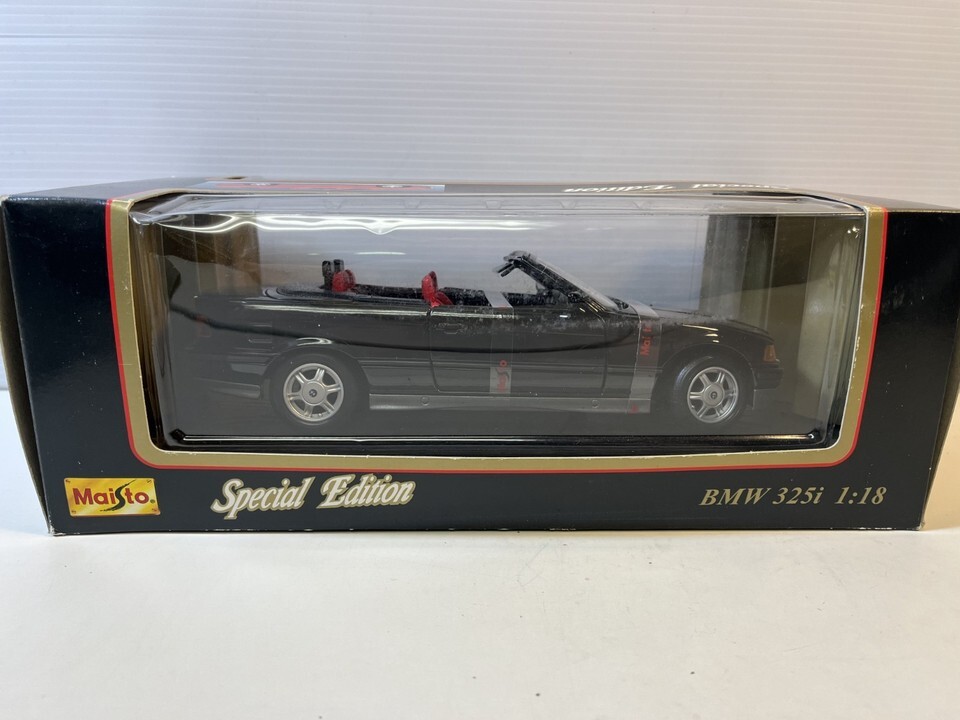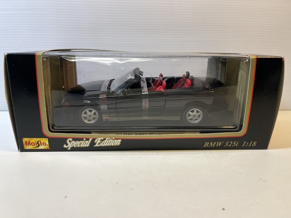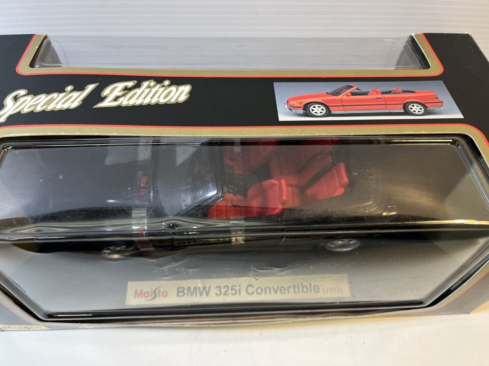 1993 BMW 325i Convertible Diecast Model Car: 1/18 Scale By Maisto. This Diecast car checks all the boxes for a reasonably priced rendition of the classic die cast 1993 BMW 325i Convertible. Please review pictures carefully before purchasing. Box shows wear.