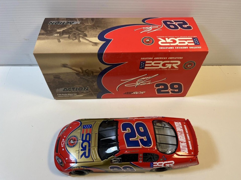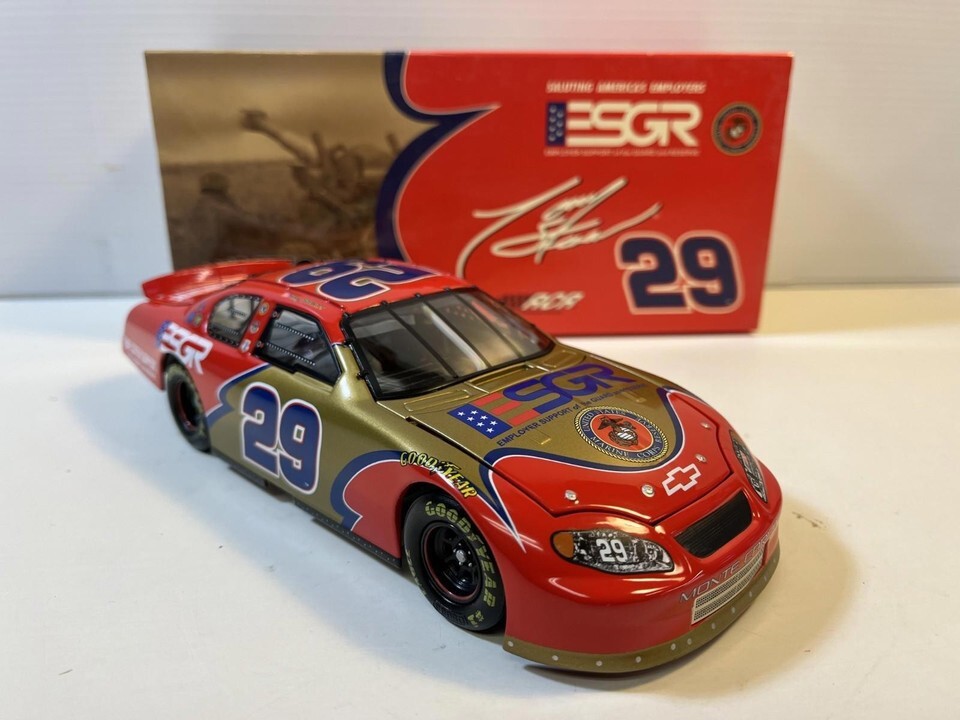 Tony Stewart #29 ESGR / Marines 2004 Monte Carlo Diecast Model Car: 1/24 Scale. This Diecast car checks all the boxes for a reasonably priced rendition of the classic die cast Tony Stewart #29 ESGR / Marines 2004 Monte Carlo. This is a used car and may have paint imperfections and / or other defects but is priced accordingly. Please review pictures carefully before purchasing.