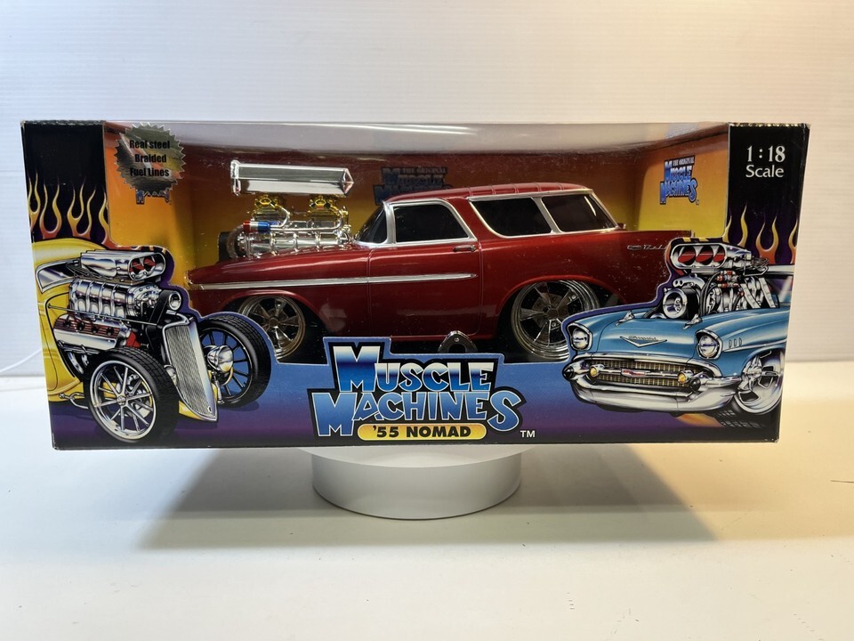 55 Chevy Nomad Muscle Machine Diecast Model Car: 1/18 Scale By Funline. This Diecast car checks all the boxes for a reasonably priced rendition of the classic die cast 55 Chevy Nomad Muscle Machine. Please review pictures carefully before purchasing.