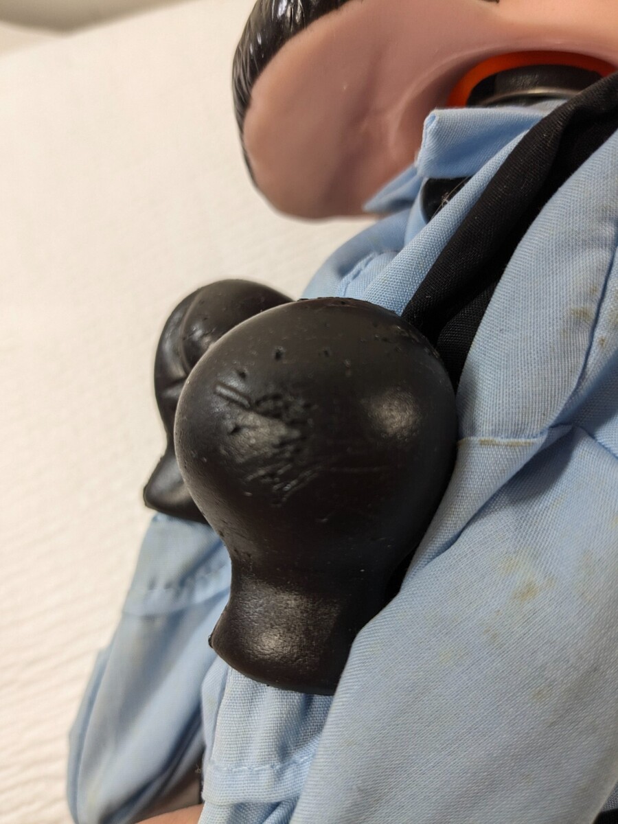 Some stains to the shirt plus marks/dents/scratches to the plastic boxing gloves as shown. See pics for details.