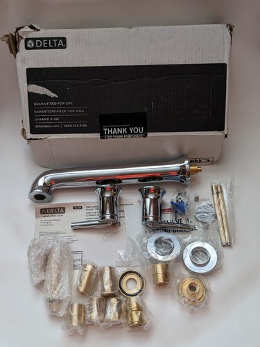 Up for sale is a new delta refurbished Trinsic Double Handle Wall Mounted Tub Filler T5759-WL-R Polished Chrome,