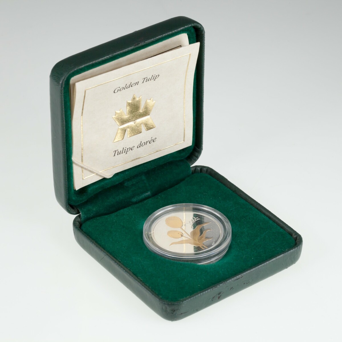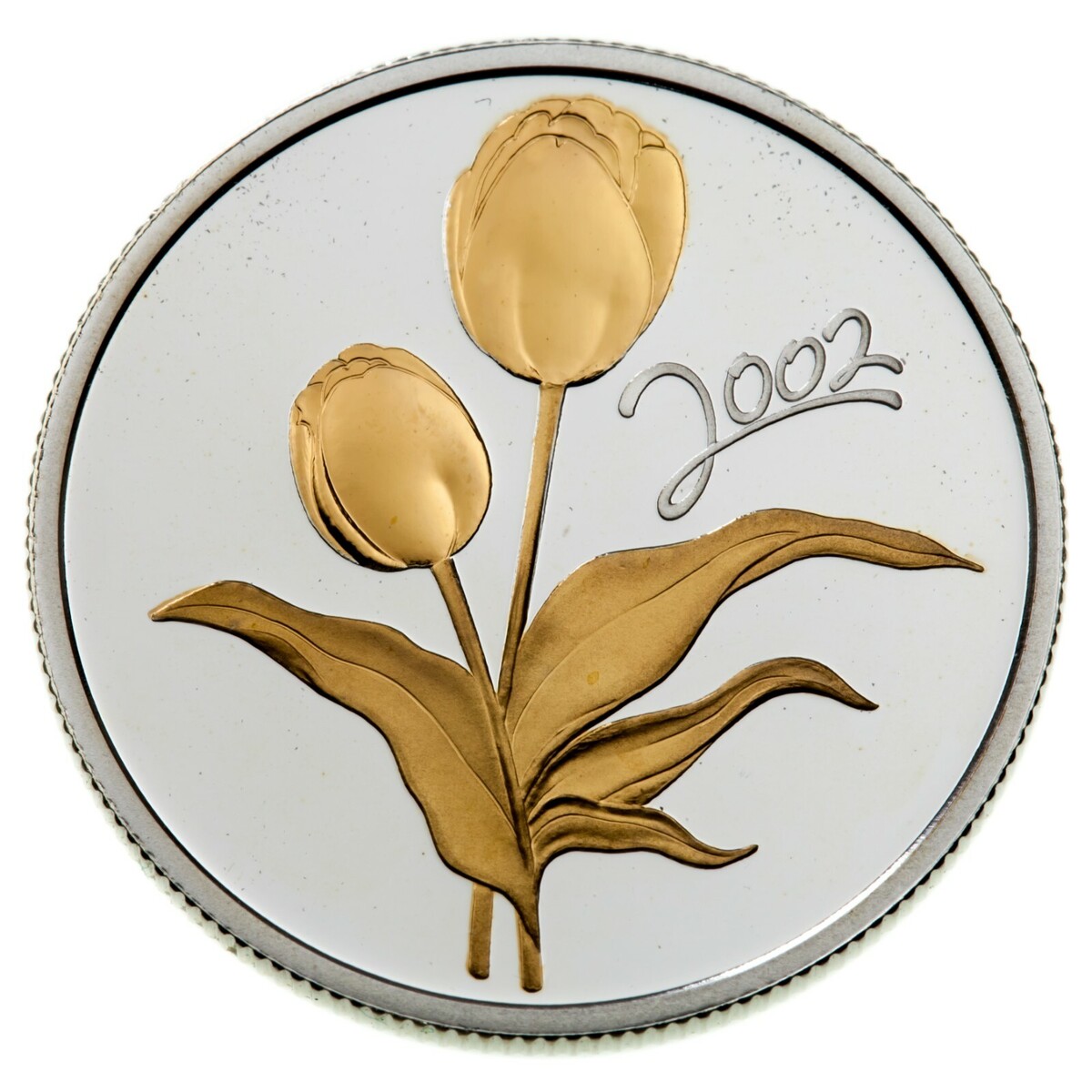 Reverse: Gold plated Tulips with year on Silver background