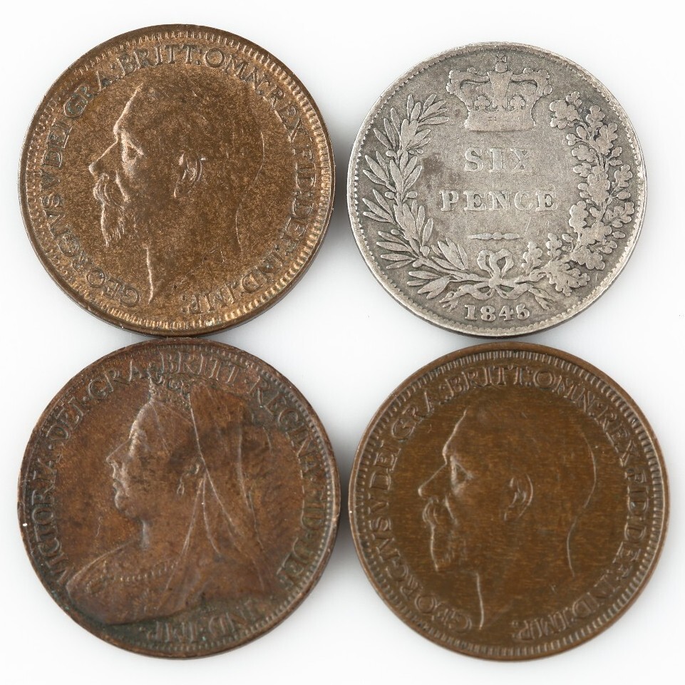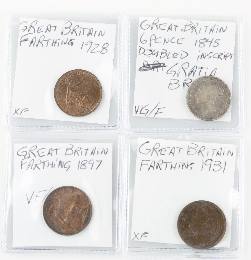 Great Britain Coin Lot 1897 1928 1931 Farthing 1845 6 Pence VF-XF Condition UK