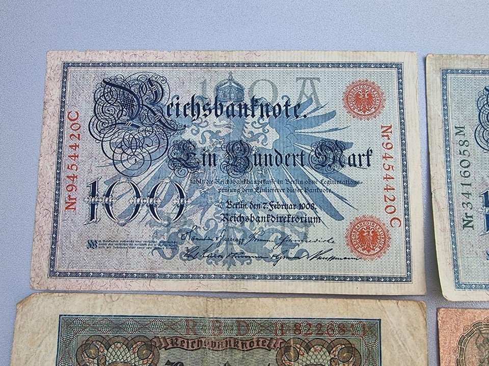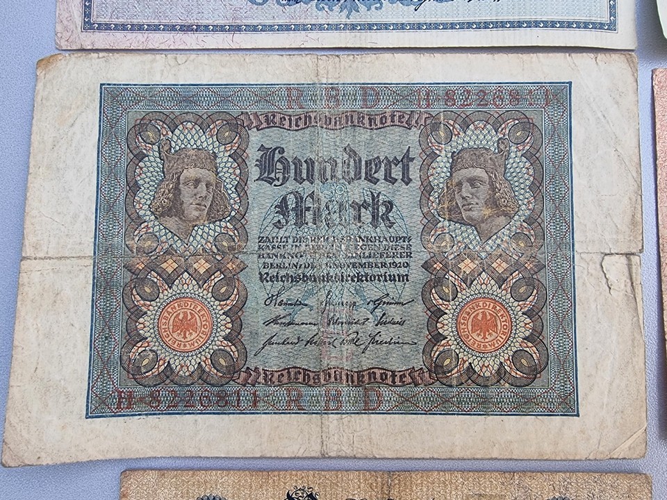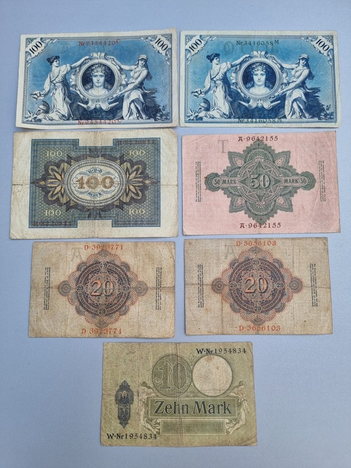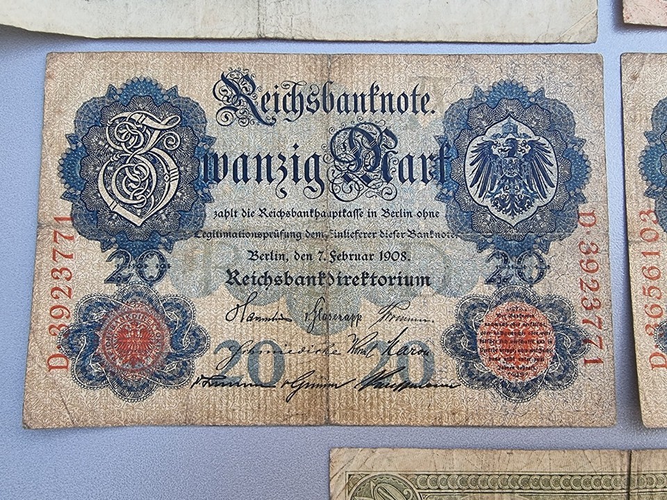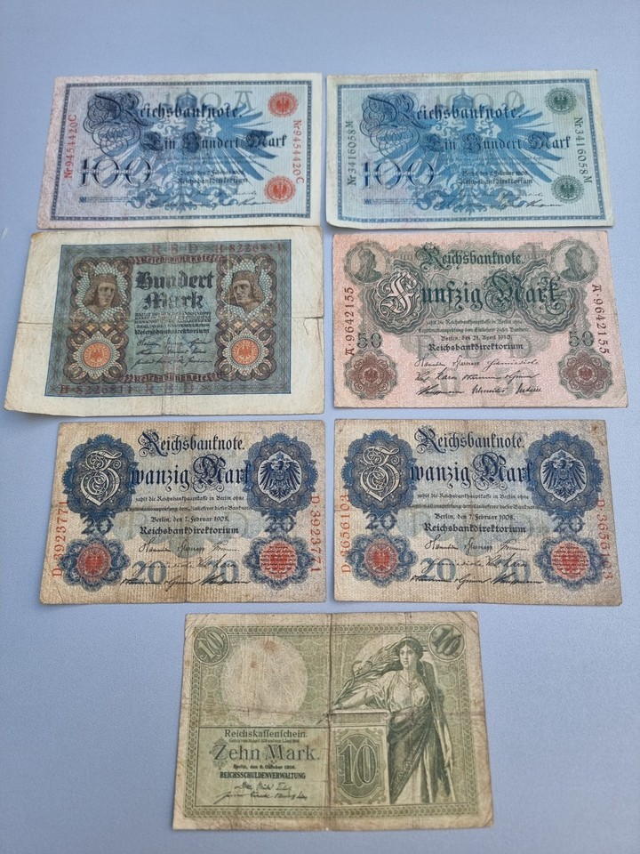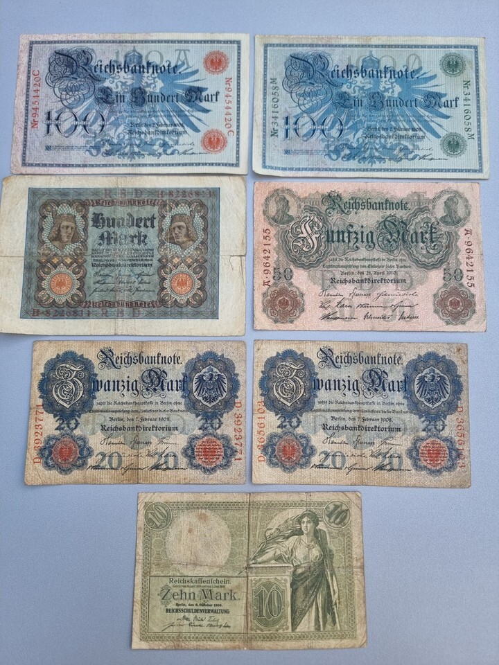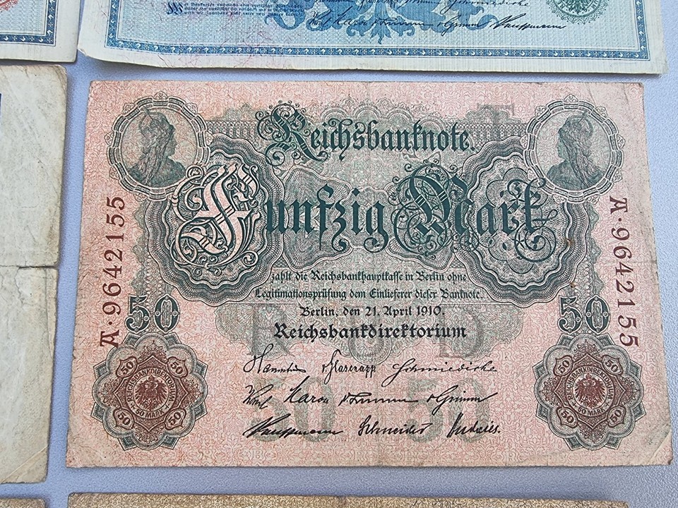 Set of 7, Germany, Deutschland Banknotes Mark ReichBanknote Paper Money Currency