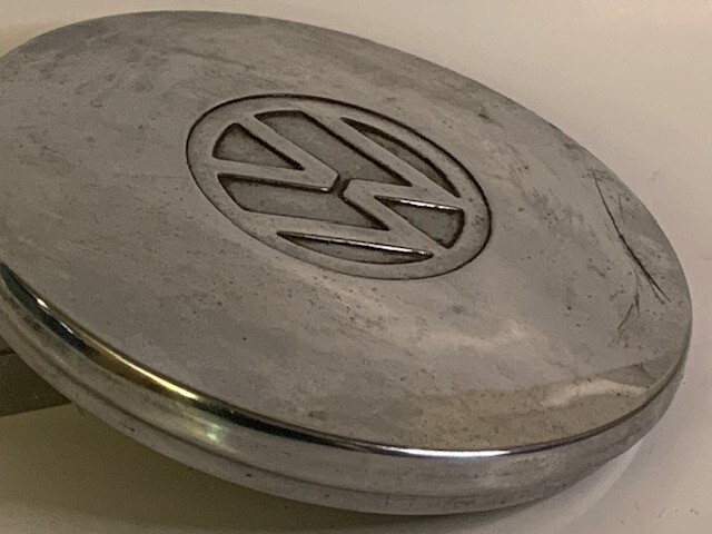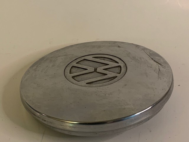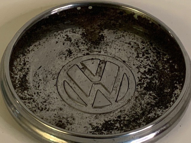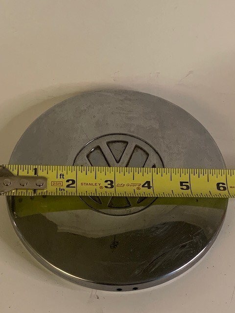 VW Chrome 6" Hub Cap Center VINTAGE OEM Scratch/dent as shown. Residue in back. Please refer to images.