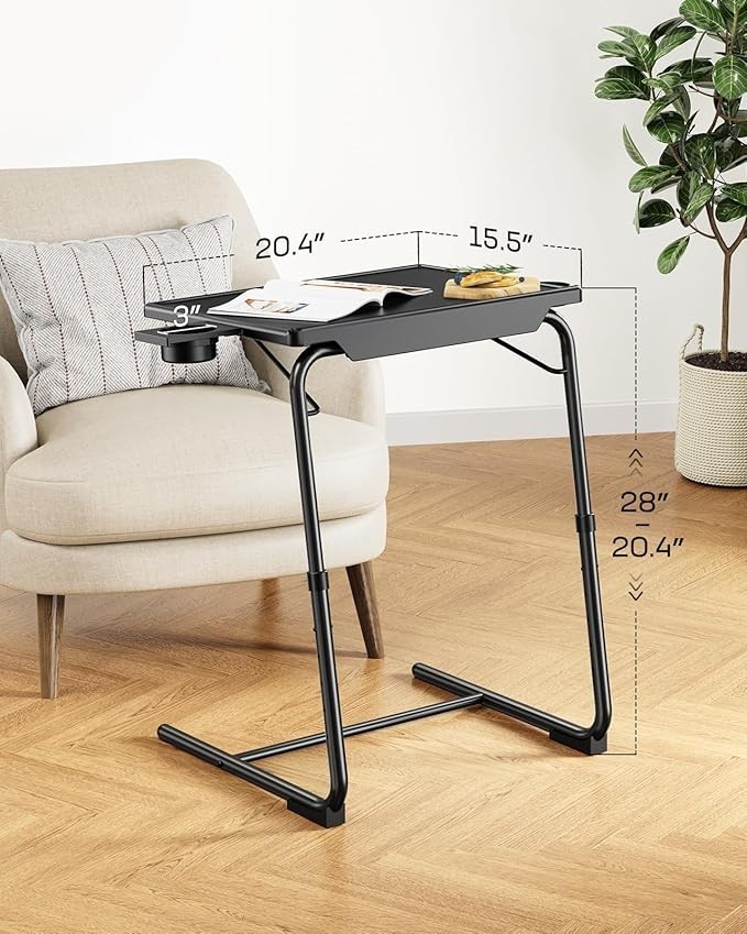 MULTIPURPOSE TV TRAY: This folding table can be used as a TV dinner tray, a convenient workstation for working or reading, or a study table for children. The TV tray measures 20.4? wide by 15.5? deep. Features a 3? cup holder for standard cup sizes.