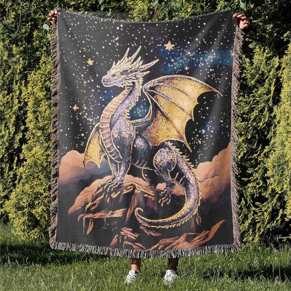 Medieval Dragon Woven Blanket Throw Tapestry Fantasy Legend Mythical Gift Decor