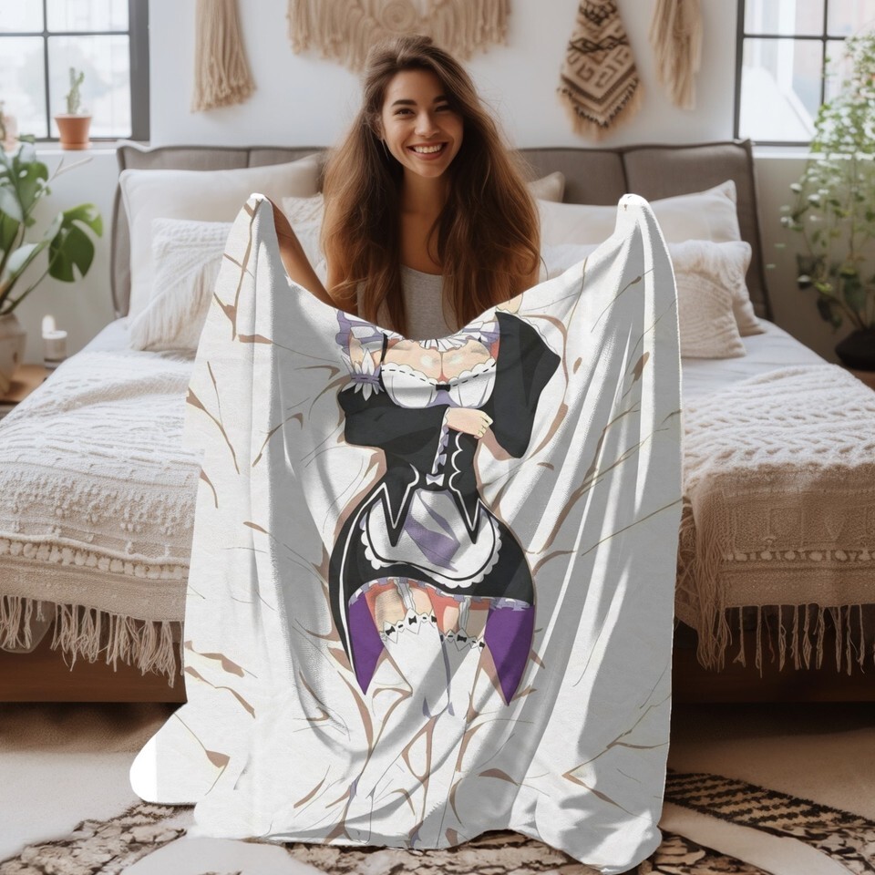 Waifu Rem Cute Waifu Velveteen Plush Blanket Re Zero Throw Blanket Soft
