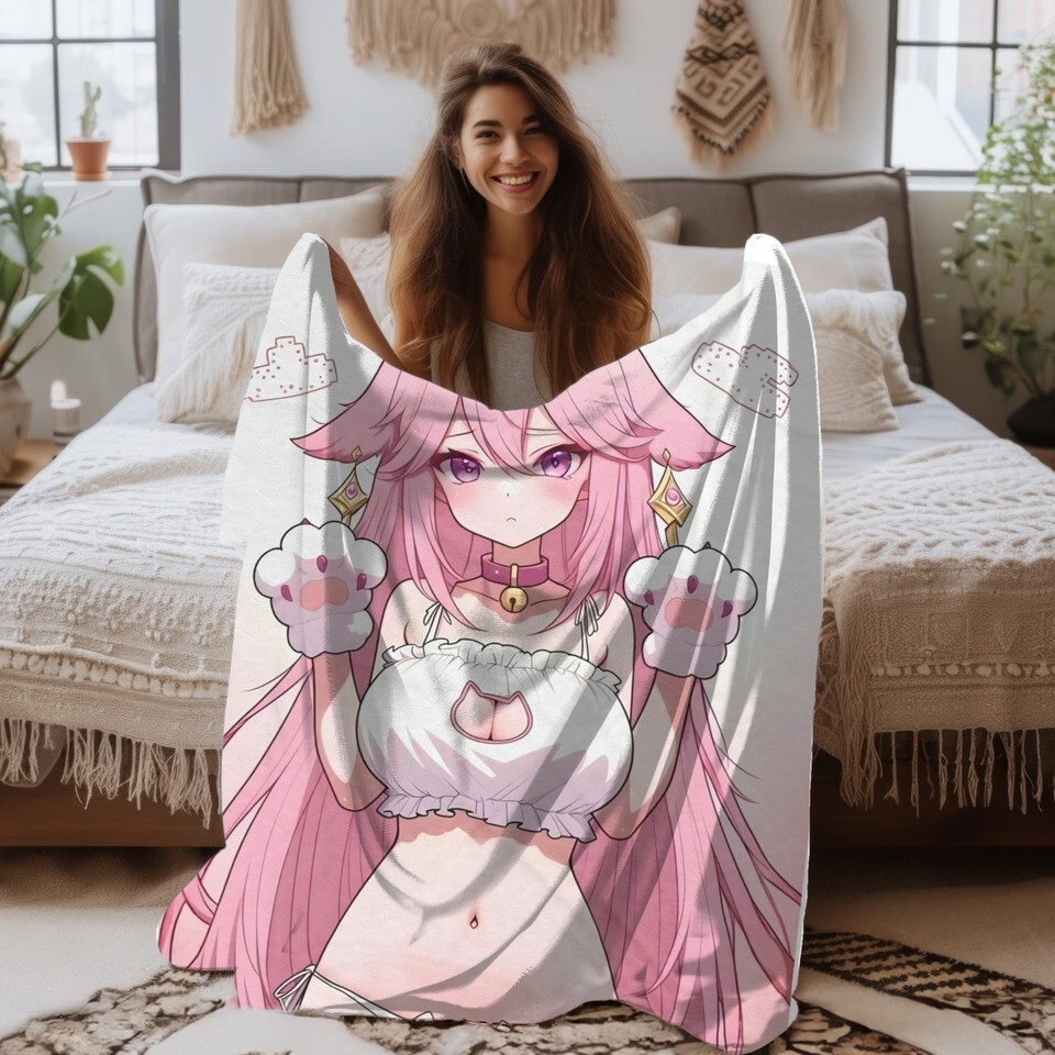 Yae Miko Cute Waifu Velveteen Plush Blanket Genshin Impact Throw Blanket Soft