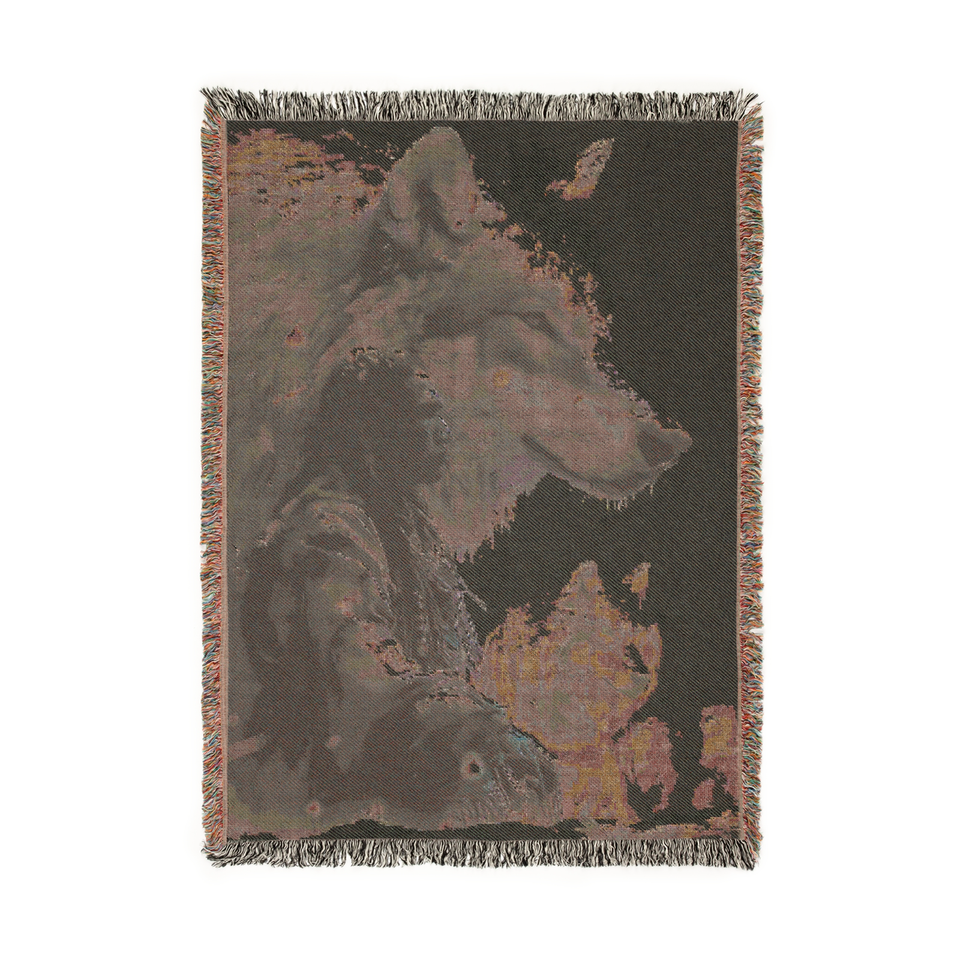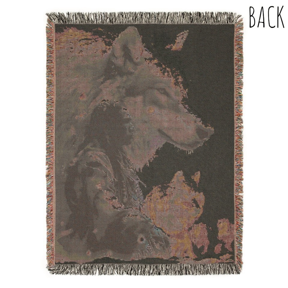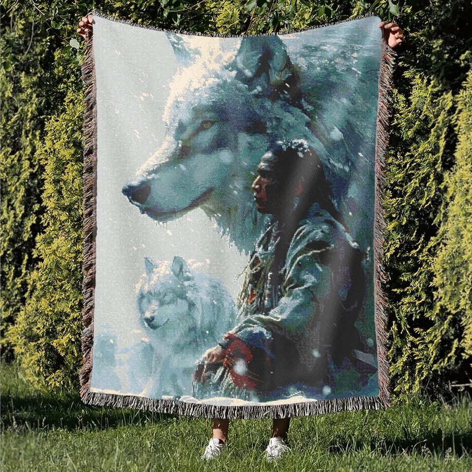 Wolf Native American Woven Blanket Throw Tapestry Cheyenne Tribal Western Decor