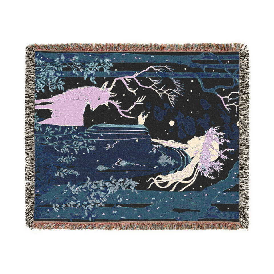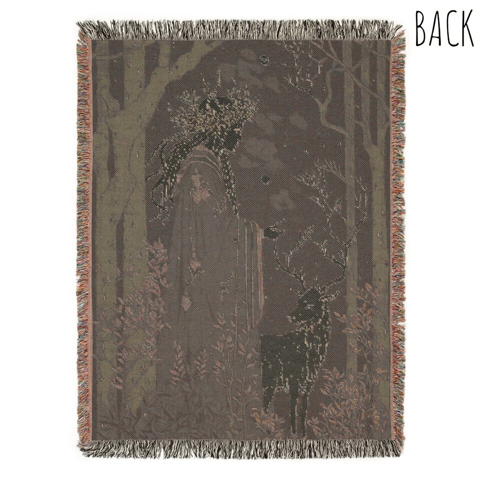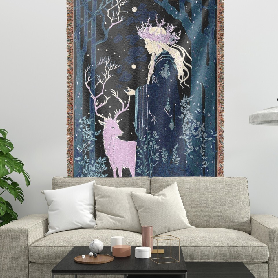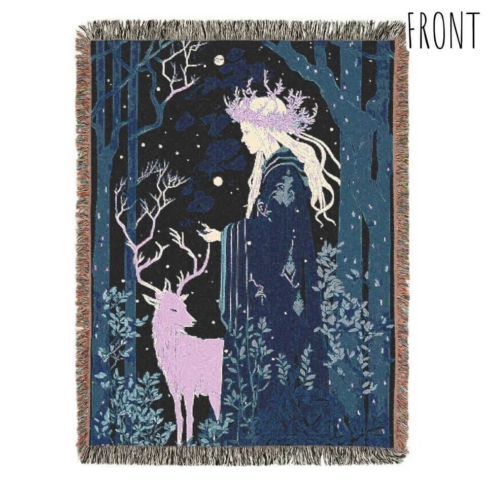 Mystic Elven Forest Woven Blanket Fantasy Deer Tapestry Throw Enchanted Decor