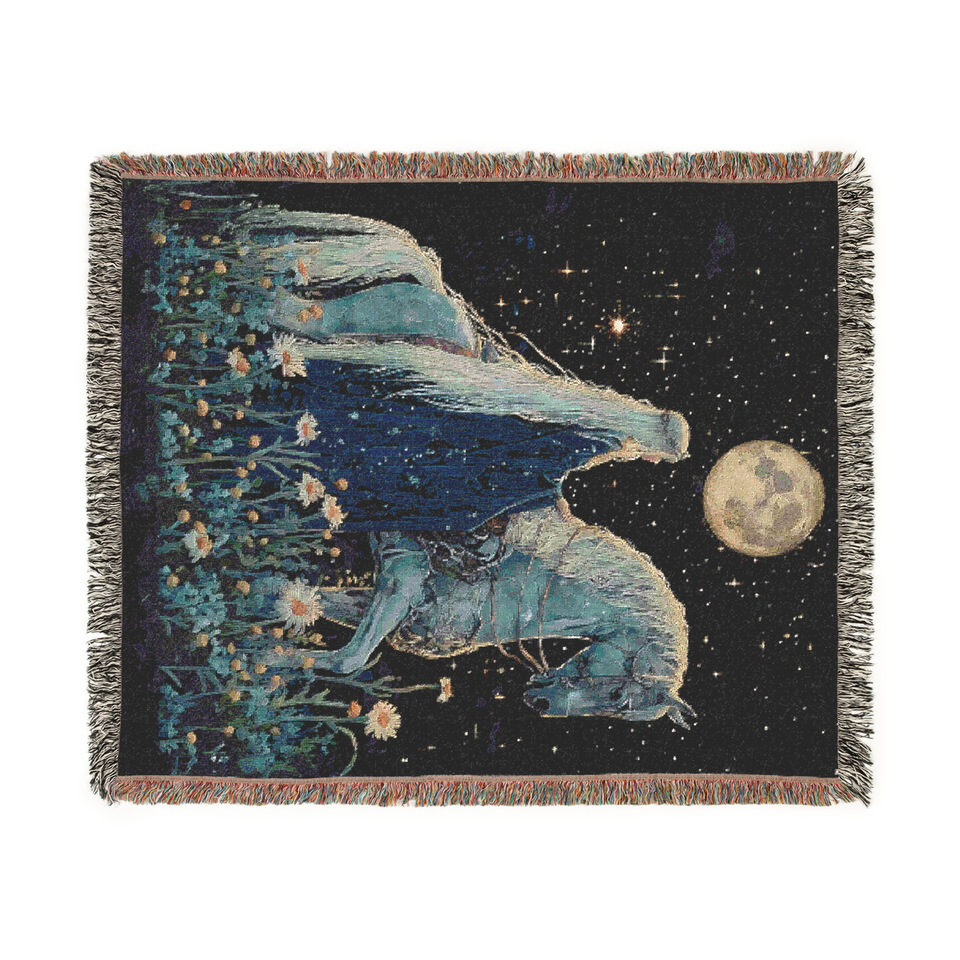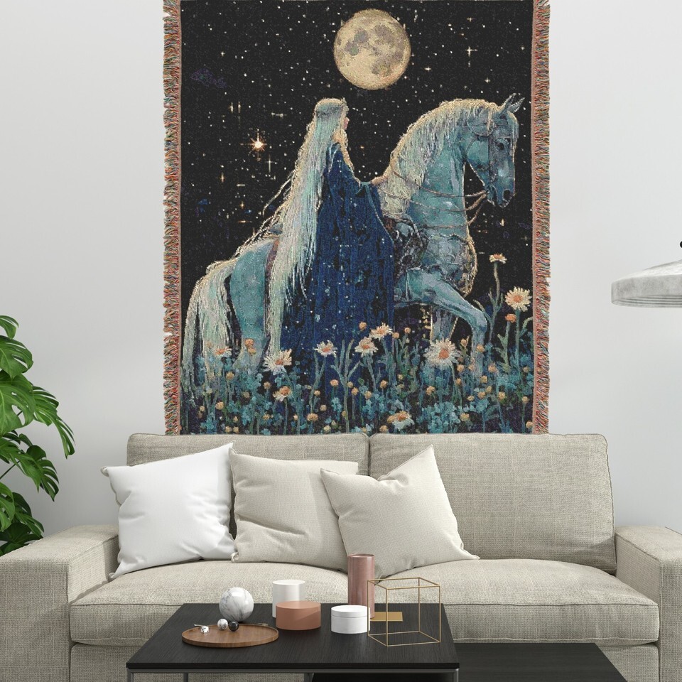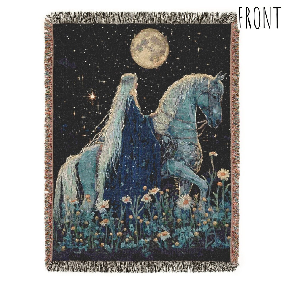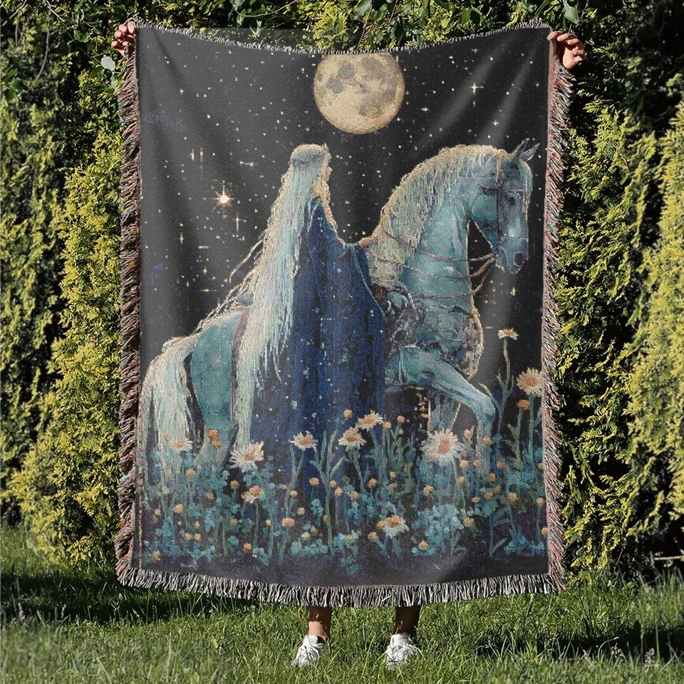 Mystical Princess Horse Woven Blanket Throw Fantasy Tapestry Fairytale Decor