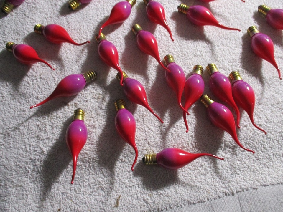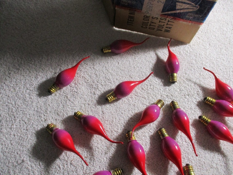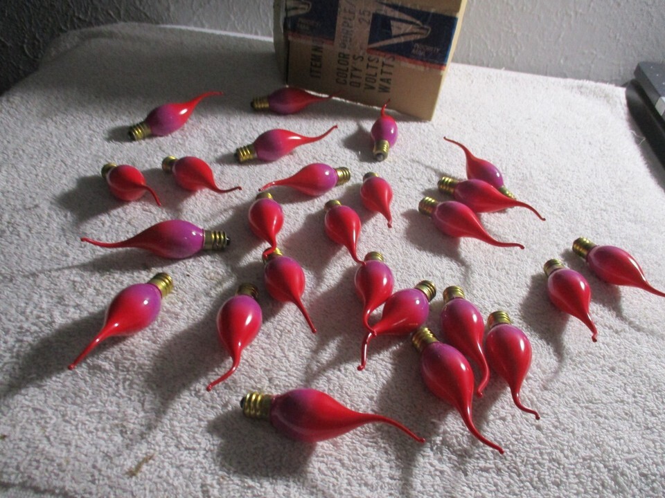 25 Red Purple Flame Drip Candelabr Bulbs Bulbs C7 Christmas NOS Rare Silico
