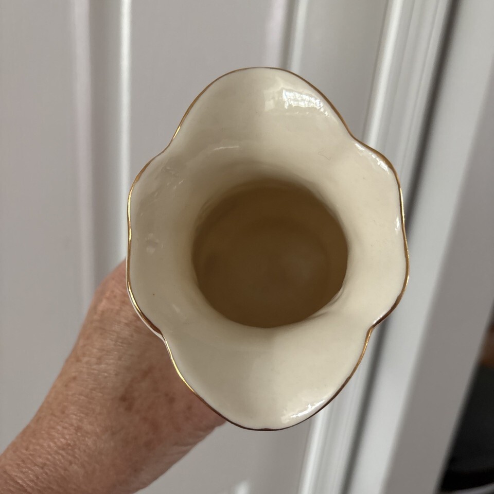 Vintage Belleek Ireland Blue Bell Bud Vase Gold Rim 6”
