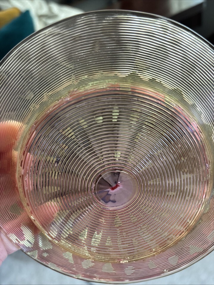 This Antique Stevens Williams threaded art glass plate in cranberry and gold is a stunning piece of decorative cookware. Handmade in the United Kingdom using a hand-blown glass production technique, this vintage plate features a unique threaded design that adds an elegant touch to any table setting. The rich cranberry and gold color combination, along with the 6.25" diameter, make this plate a standout piece for collectors or those looking to add a touch of vintage charm to their home decor.