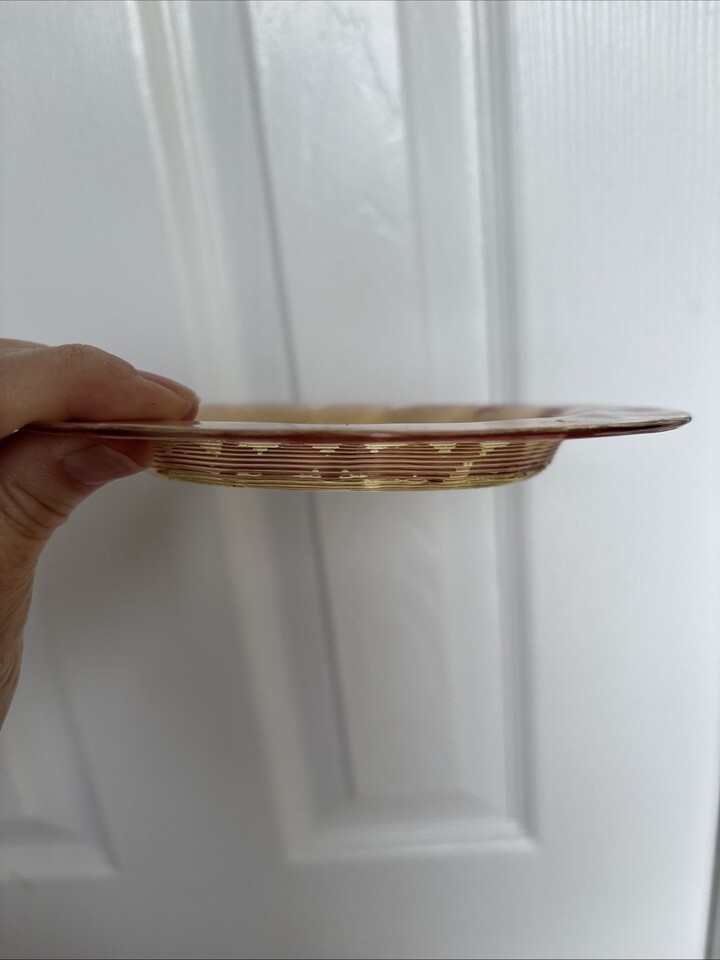 Antique Stevens & Williams Threaded Art Glass Plate in Cranberry & Gold 6.25”