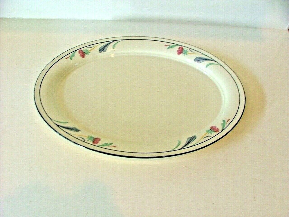 This serving platter has no chips, cracks or crazing. A few utensil marks can be seen. Excellent pre-owned condition. Comes from my smoke and pet free home.