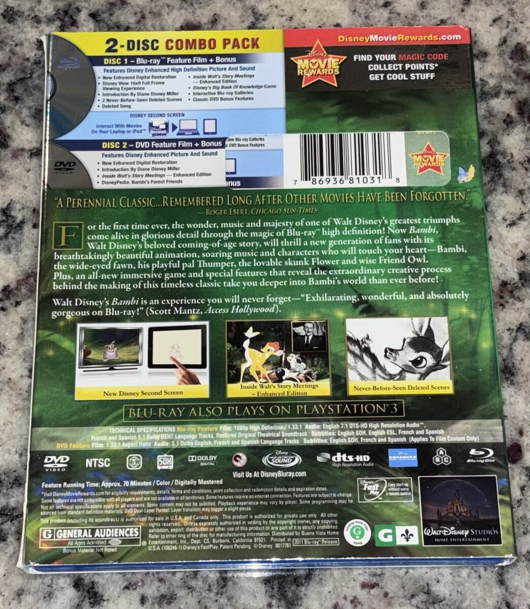 Bambi Disney Diamond Edition (Blu-ray DVD Combo 2-Disc Set) With Slipcover