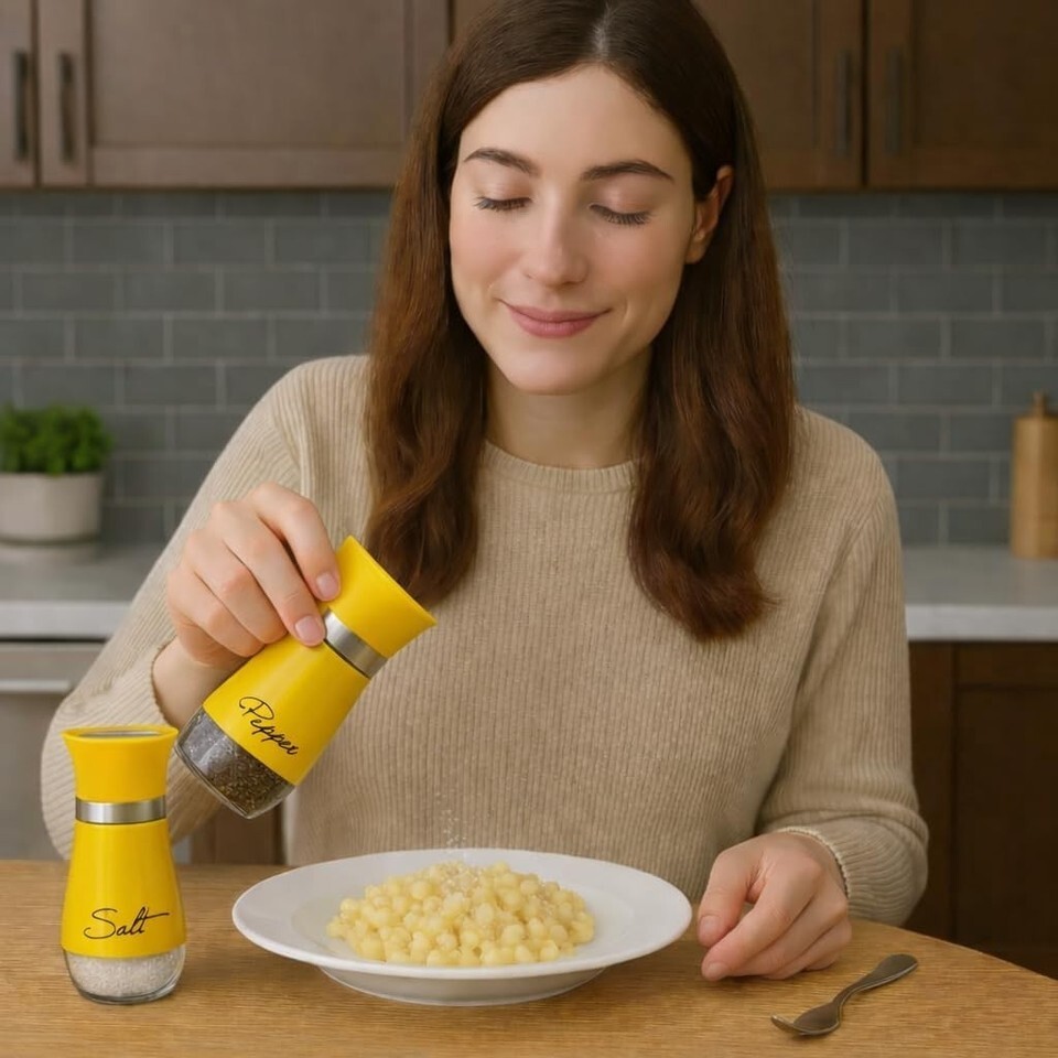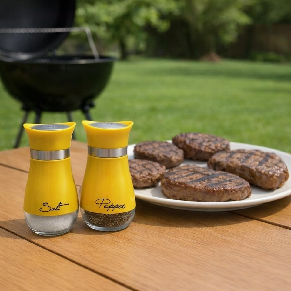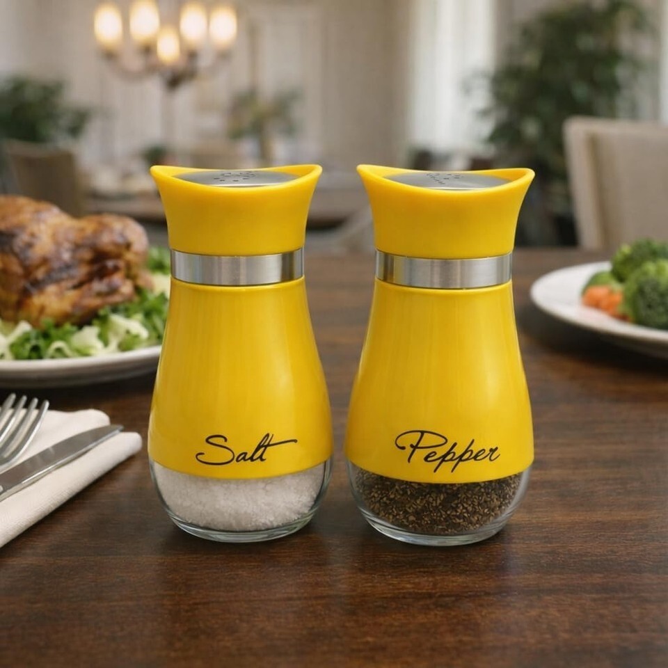 Salt Pepper Shaker Set Glass w/ Printed Labels 4.42 oz BPA-Free Yellow