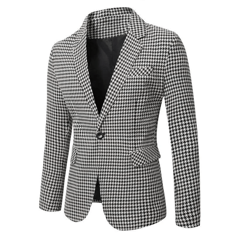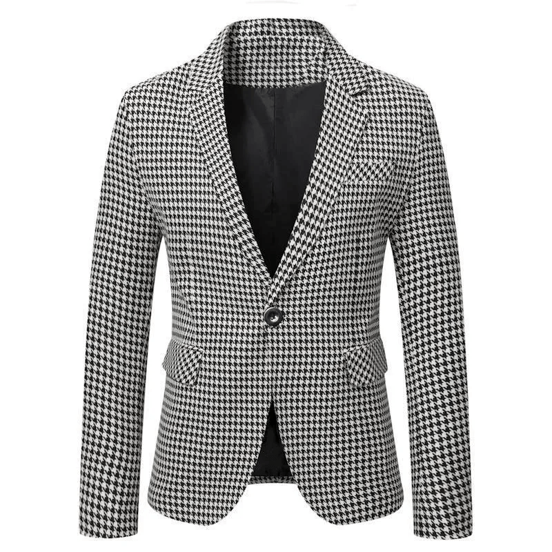 Men's Street Style Checkered Blazer - Loose Fit Casual Suit Jacket Spring
