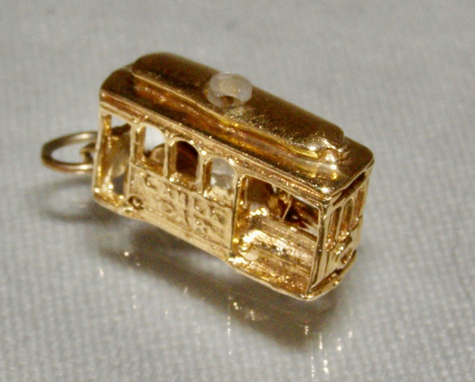 VINTAGE 14K YELLOW GOLD MOVABLE SAN FRANCISCO CABLE CAR TROLLEY CHARM- 3.37grams