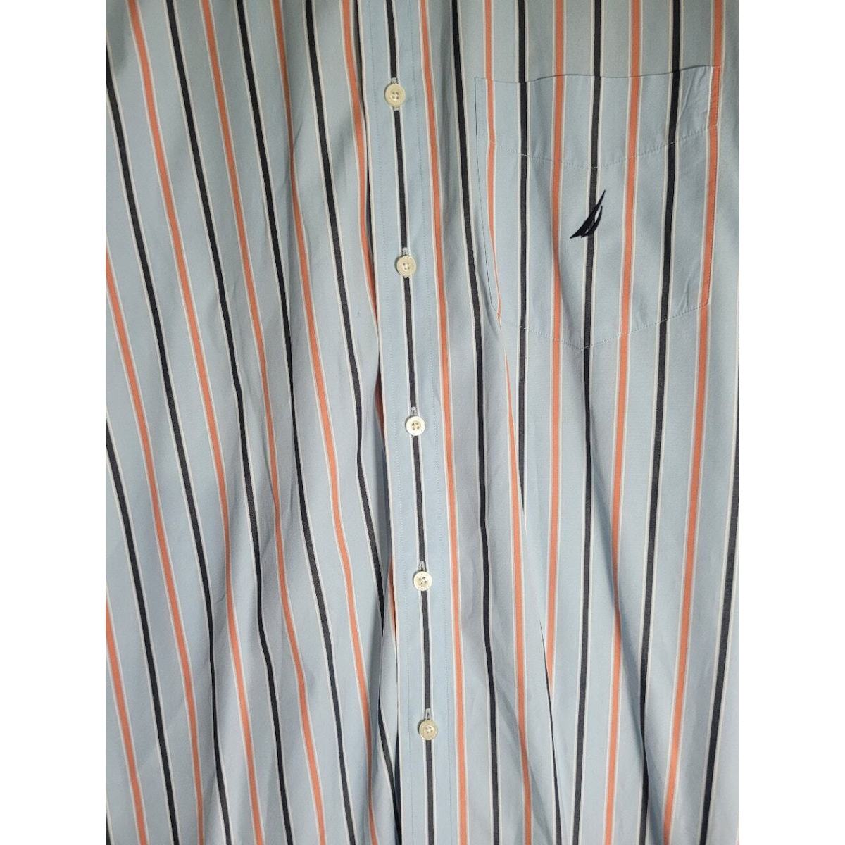 Nautica Mens Dress Casual Shirt Long Sleeve Button Down L Blues Orange