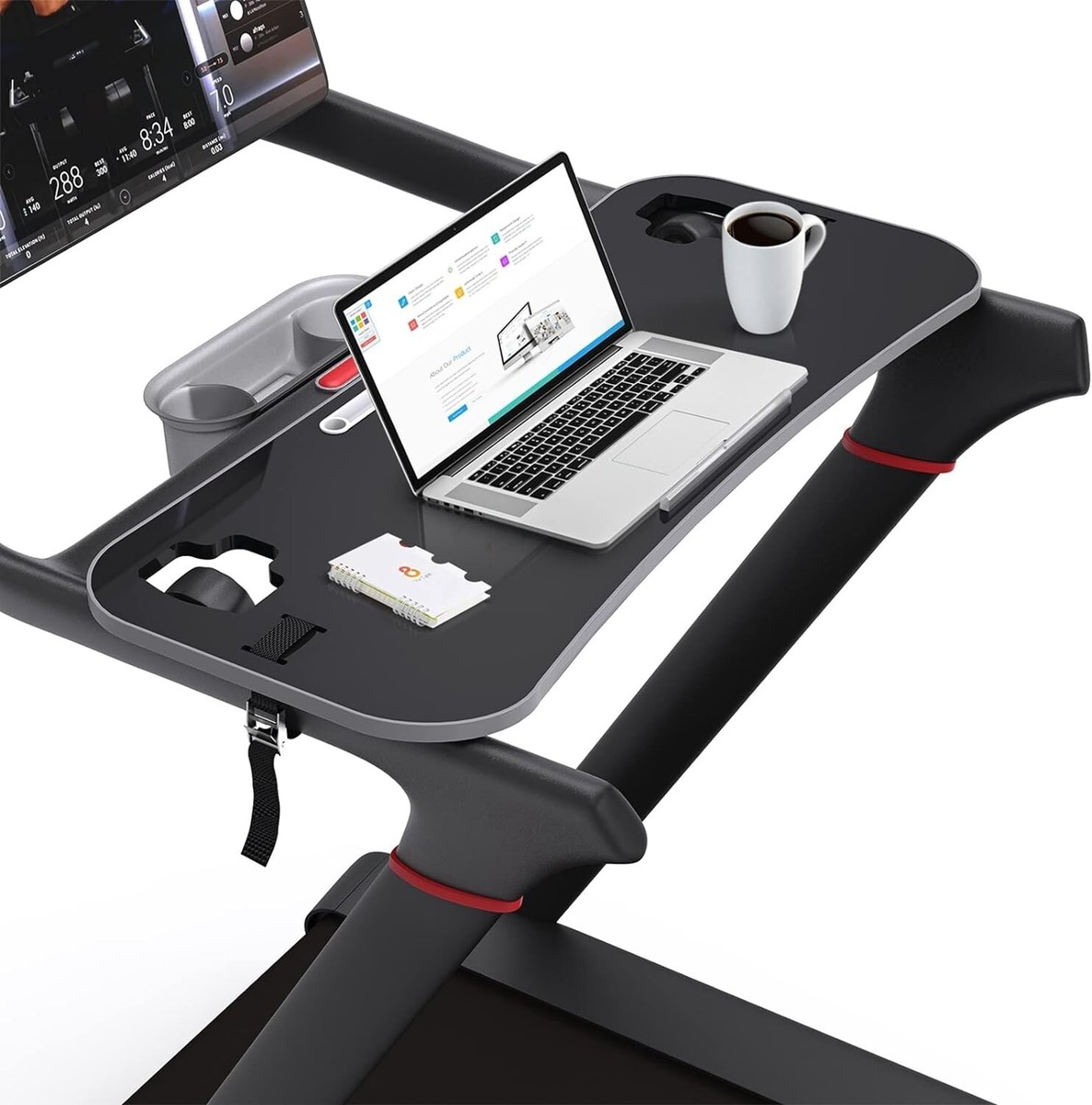 ? Upgraded Treadmill Desk for New Working Style! This treadmill laptop holder would be a total enhancement to your work out experience, get your work done and burning off the calories at the same time! It's perfect treadmill tray for your laptop, tablet, and more when you walk or jog.