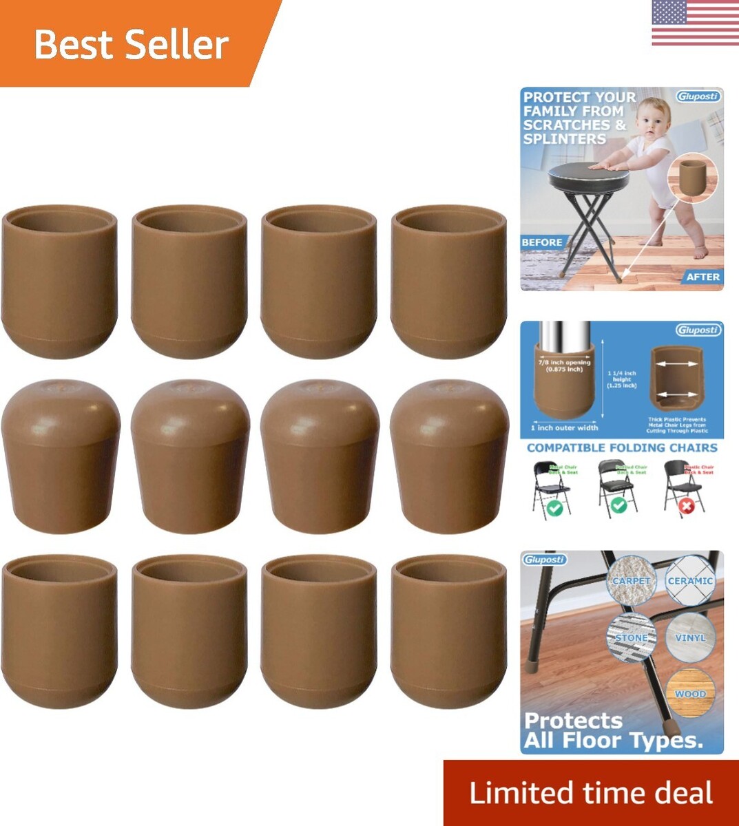 Fit most metal and padded folding chairs, card table leg caps, bar stool feet covers.