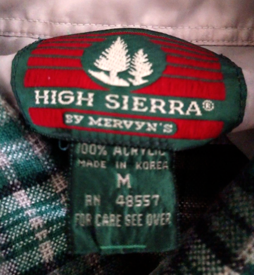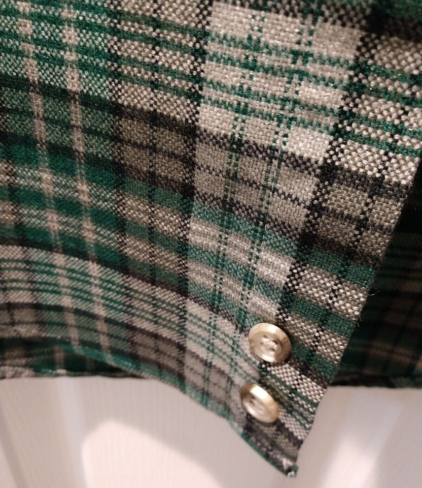 Shirt Button Plaid Long Sleeve Men Med High Sierra Pockets Green Black Vintage