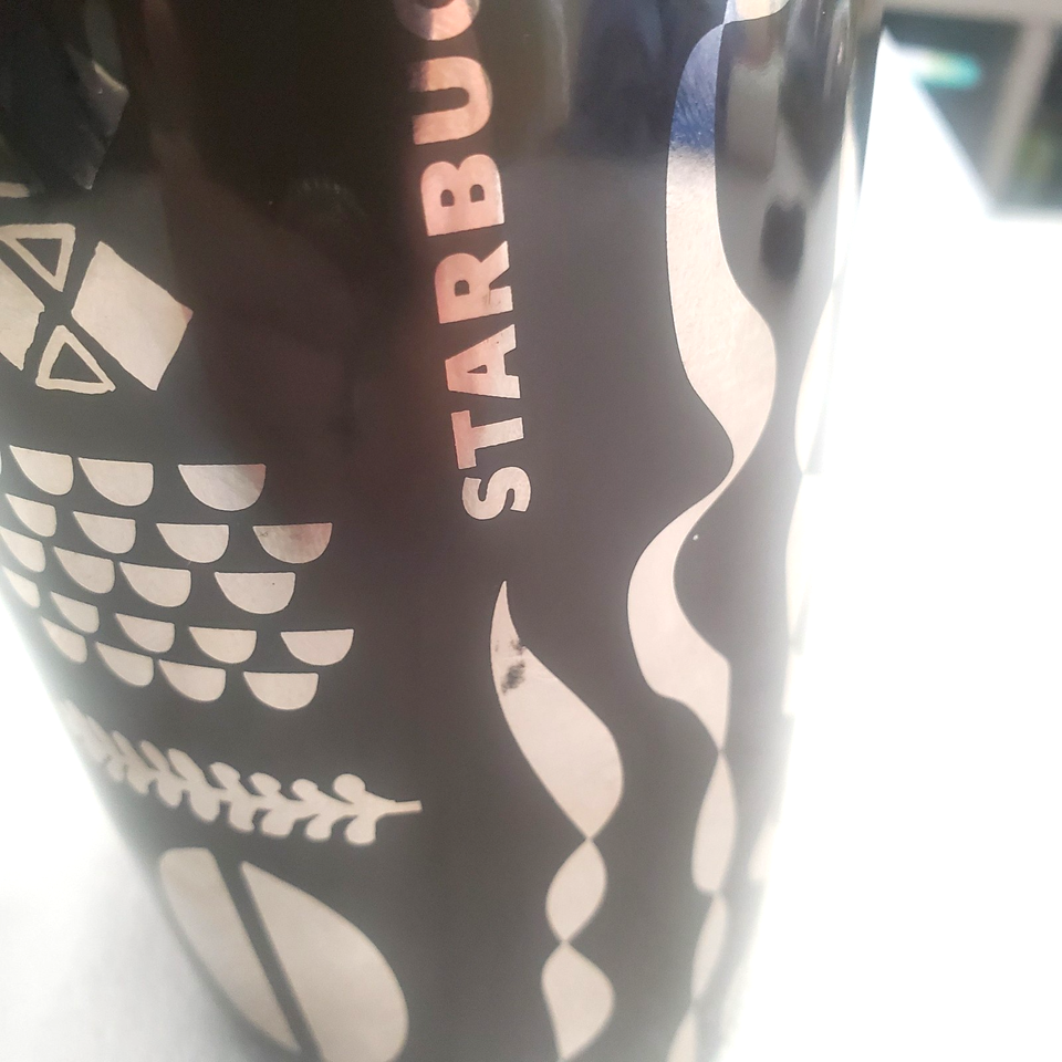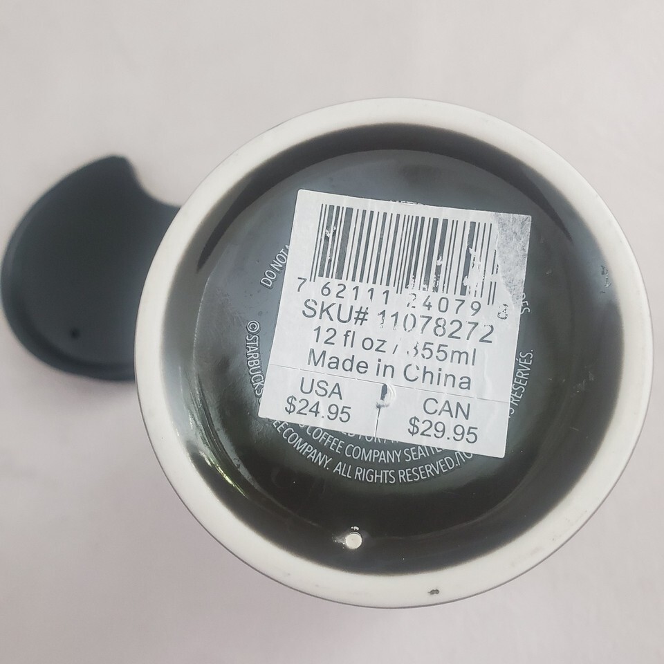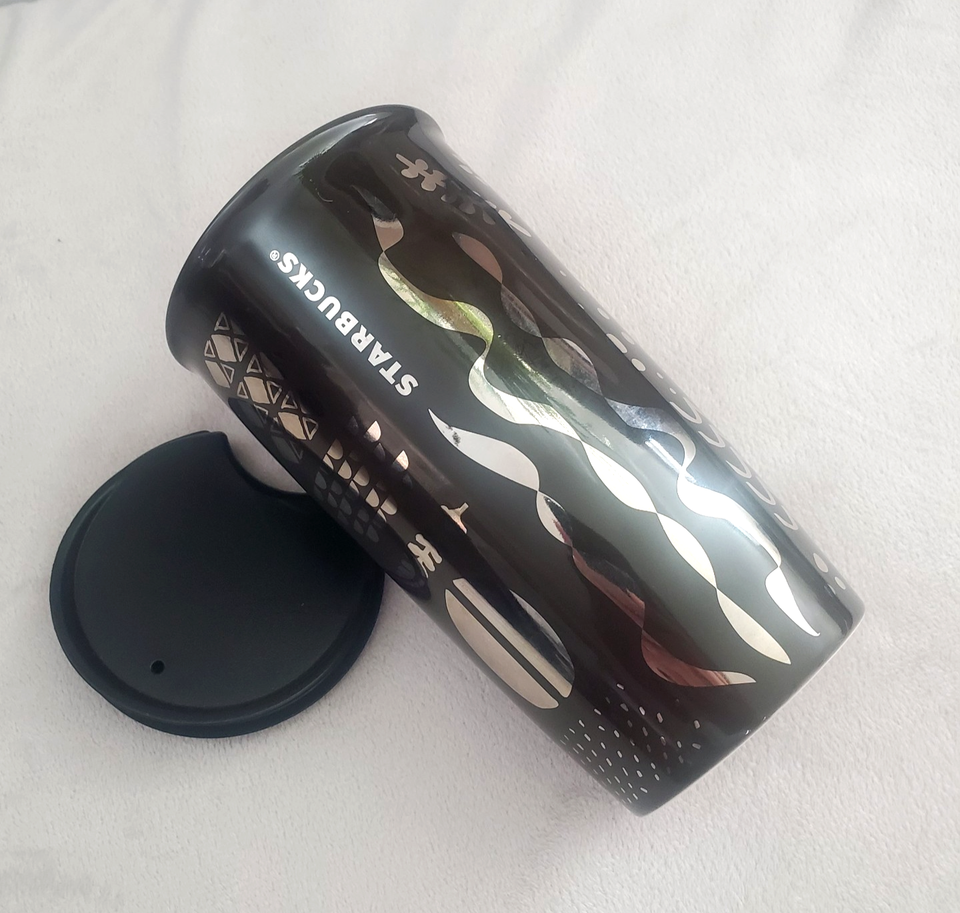 Starbucks Mermaid Siren Ceramic 12 oz Tumbler Lid Black Silver Metallic 2017