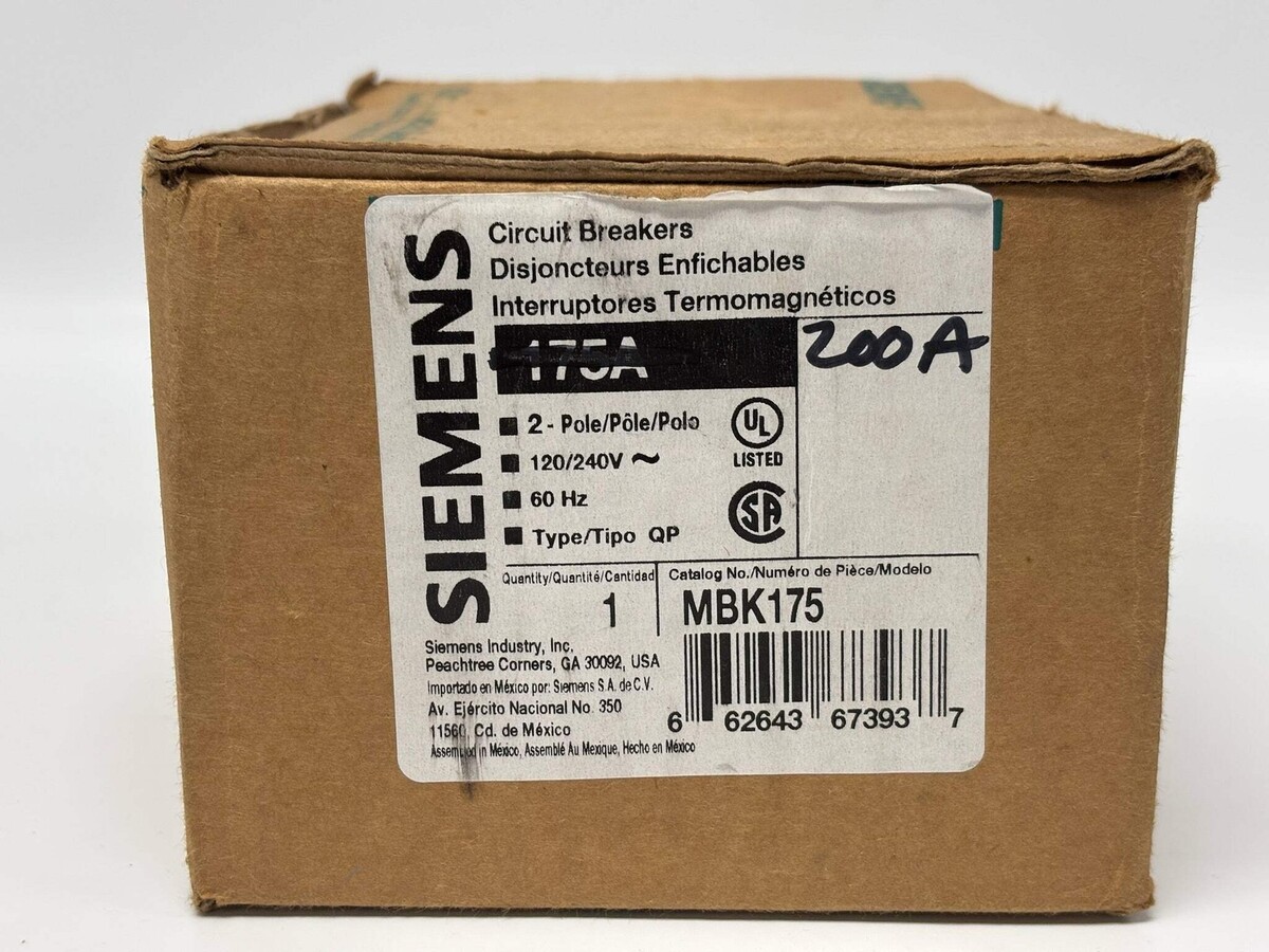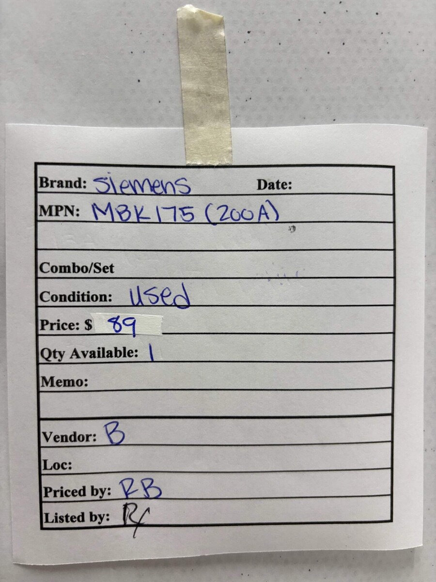 Siemens MBK175 Main Breaker Kit 175A 200A Class Load Centers Used ***Please See Reference Photos*** The Siemens MBK175 is a 200 amp main breaker kit designed to provide overcurrent protection in Siemens load centers. This main breaker offers dependable performance in residential or light commercial electrical panels. It fits Siemens and compatible load centers to serve as the primary disconnect and protection for the service entrance. The breaker?s robust construction ensures long-lasting reliability and safe operation under normal load conditions. Listed by: Richard (Sales Team) ?Learn to dance with the changes that lie ahead... then prepare to conquer the challenges that follow.? RRW (A positive moment brought to you by Help Resale) About Us Welcome to Help Resale, your go-to consignment shop where value meets quality. At Help Resale, we're dedicated to providing you with an exceptional shopping experience, whether you're looking to find the best deals or consign your items. Need to buy a product, but don't see it in our store? Please feel free to reach out to us and we will help you find it! Help Resale 7200 Fair Oaks Blvd Suite 120 Carmichael CA 95608 Business Hours: Monday-Friday: 9:00 am to 5:00 pm (PST) All product and company names are trademarks TM or registered trademarks of their respective holders. Use of them does not imply any affiliation with or endorsement by them.