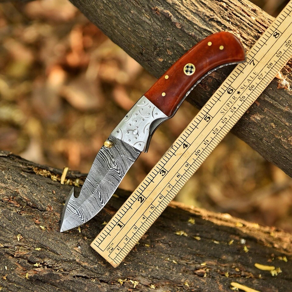 Handmade Damascus Folding Blade Pocket Knife Tactical - Gut Hook Skinner Hunter