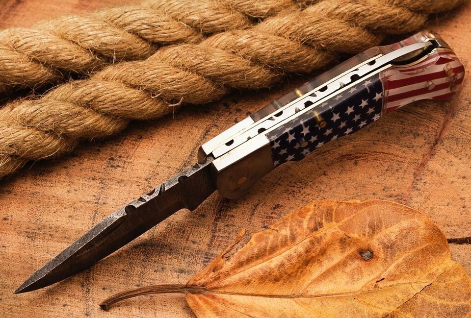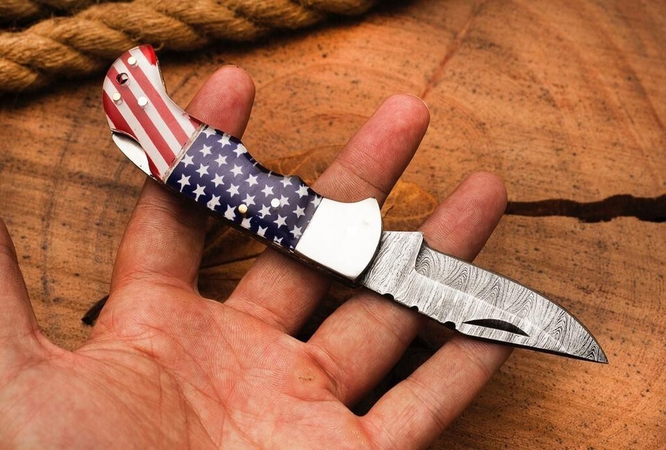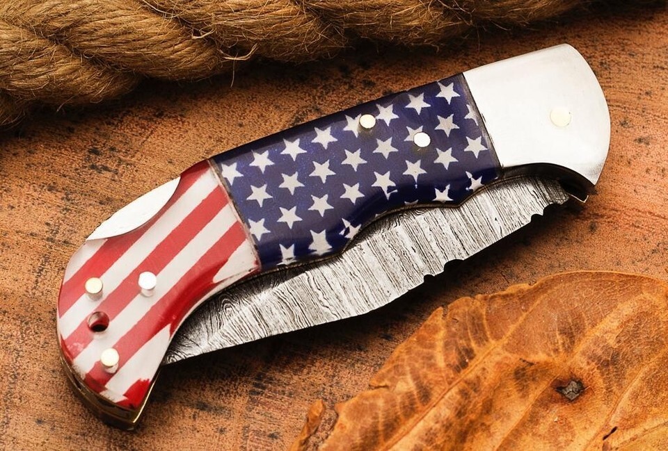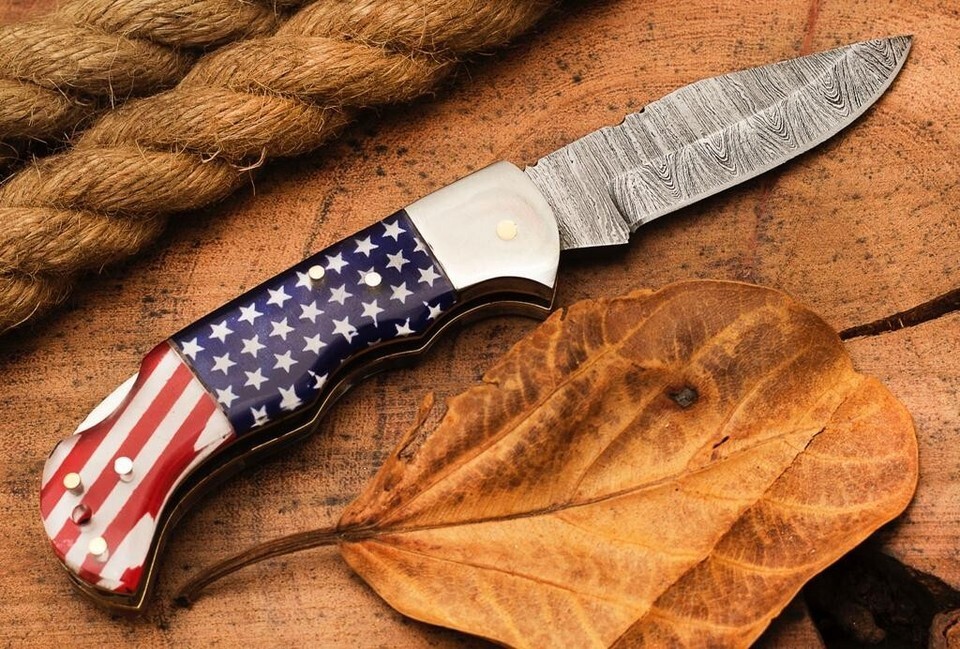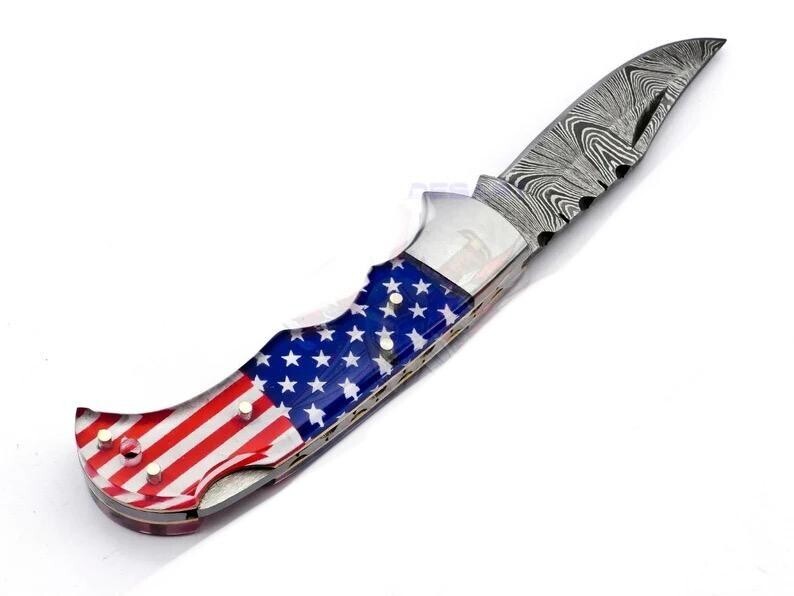 Us Flag Damascus Steel Folding Blade Pocket and 50 similar items