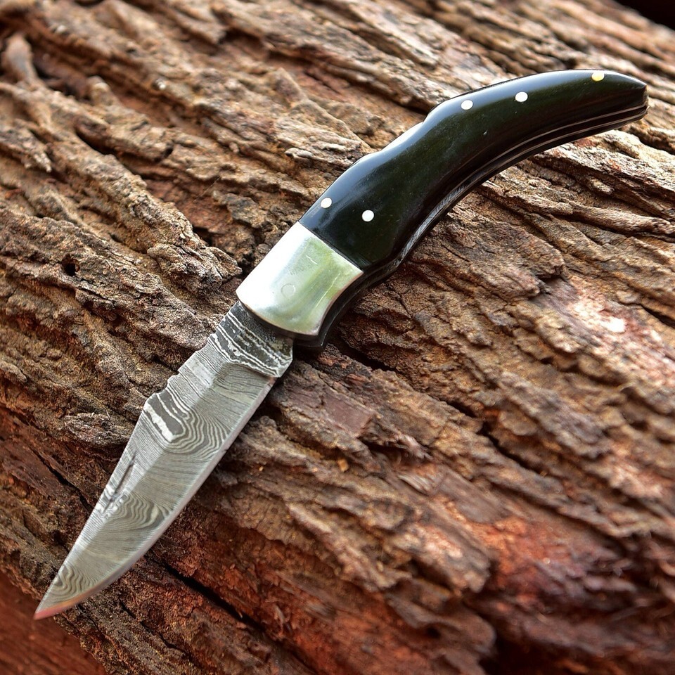 Custom Handmade Damascus Steel Foldable Blade Pocket Knife Lock-back With Sheath