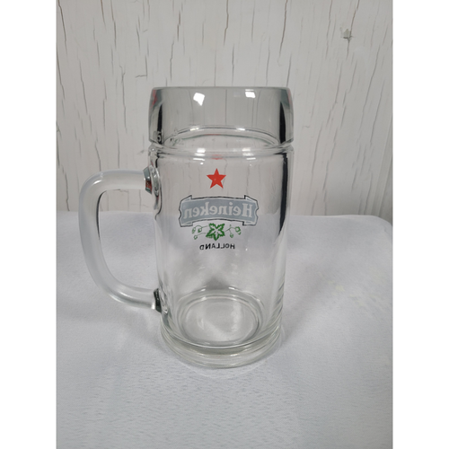 Vtg Heineken Red Star Beer 20 Oz .5L Glass Mug 6" Stein Tankard Holland Barware
