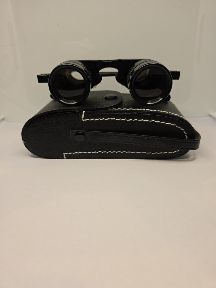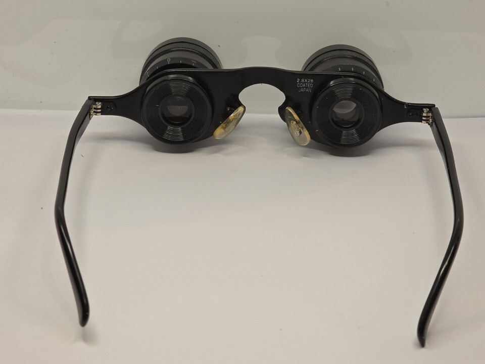 The Vintage 2.8x28 Coated Sports Glasses from Japan are compact opera binocular eyeglasses with a classic black color and a maximum magnification of 8x. These lightweight binoculars feature anti-reflection coating for enhanced clarity and are ideal for both opera glasses and general-purpose use. The included case and box add to the convenience and preservation of this unique and stylish piece of eyewear.